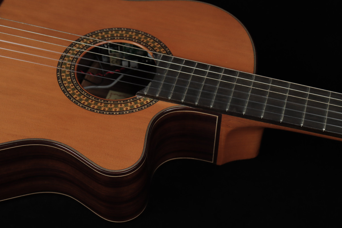 A balanced guitar in all aspects, robust, with concert measures and a perfect action of the strings. A string action that is high enough to make the guitar sing but extremely comfortable.