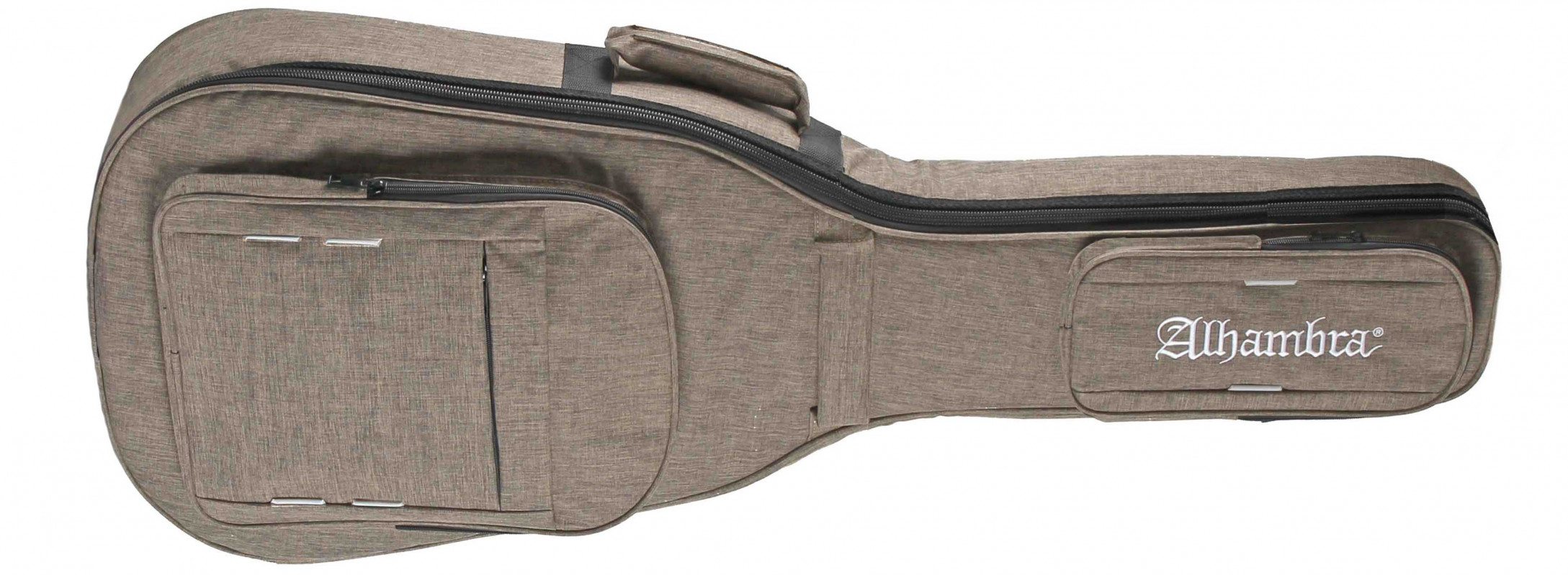 Padded Alhambra-branded bag for classical guitar with a front pocket. Internal padding of 25 mm.