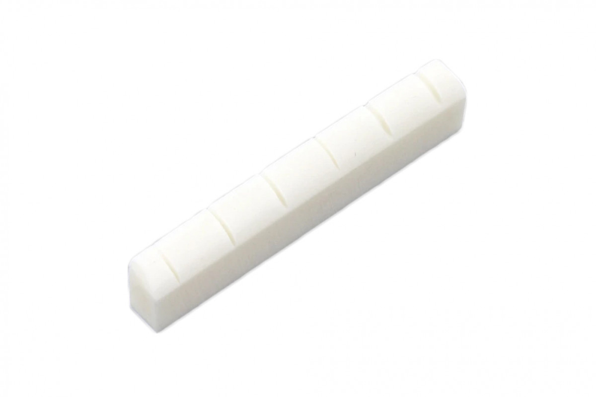 Pre-slotted bone nut for Gibson® electric guitars. Frequently used on the Les Paul® model. Dimensions: 1-3/4" x 3/16" x 3/8". Spacing: 1-3/8".