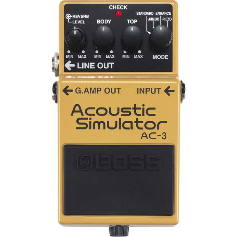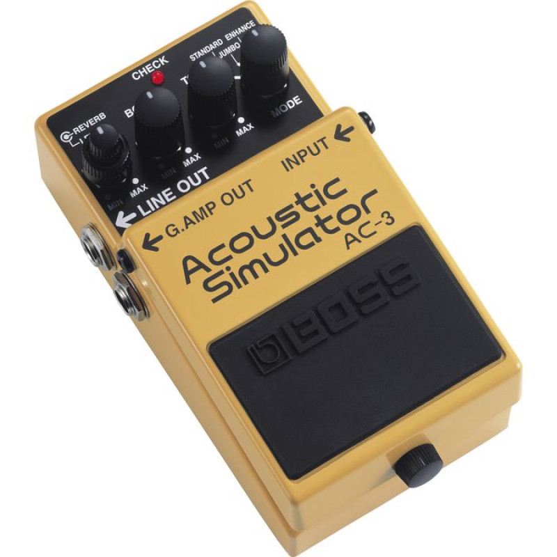 How many times have you found yourself on stage or in the studio with your electric guitar, wishing you had brought your acoustic guitar along as well? For musicians who travel light, carrying another guitar is not always an appealing option. The BOSS AC-3 is the solution! This compact next-generation pedal uses COSM® modeling technology to transform any electric guitar into a range of beautiful acoustic guitars.