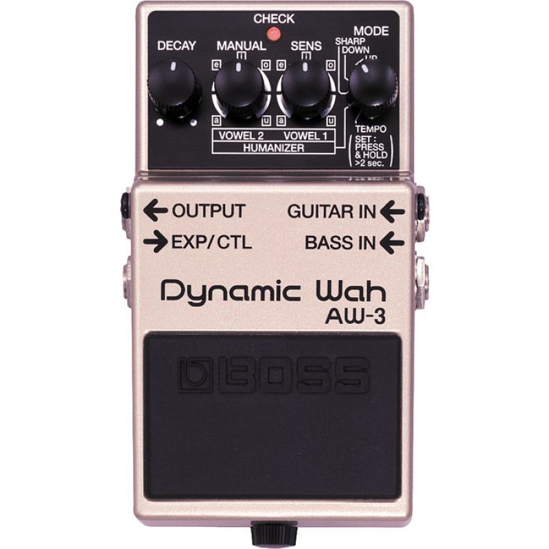 The AW-3 is the new Wah pedal from Boss that combines the classic wah effect with the "Humanizer" effect. It can function as either an automatic or manual wah by connecting an external expression pedal.