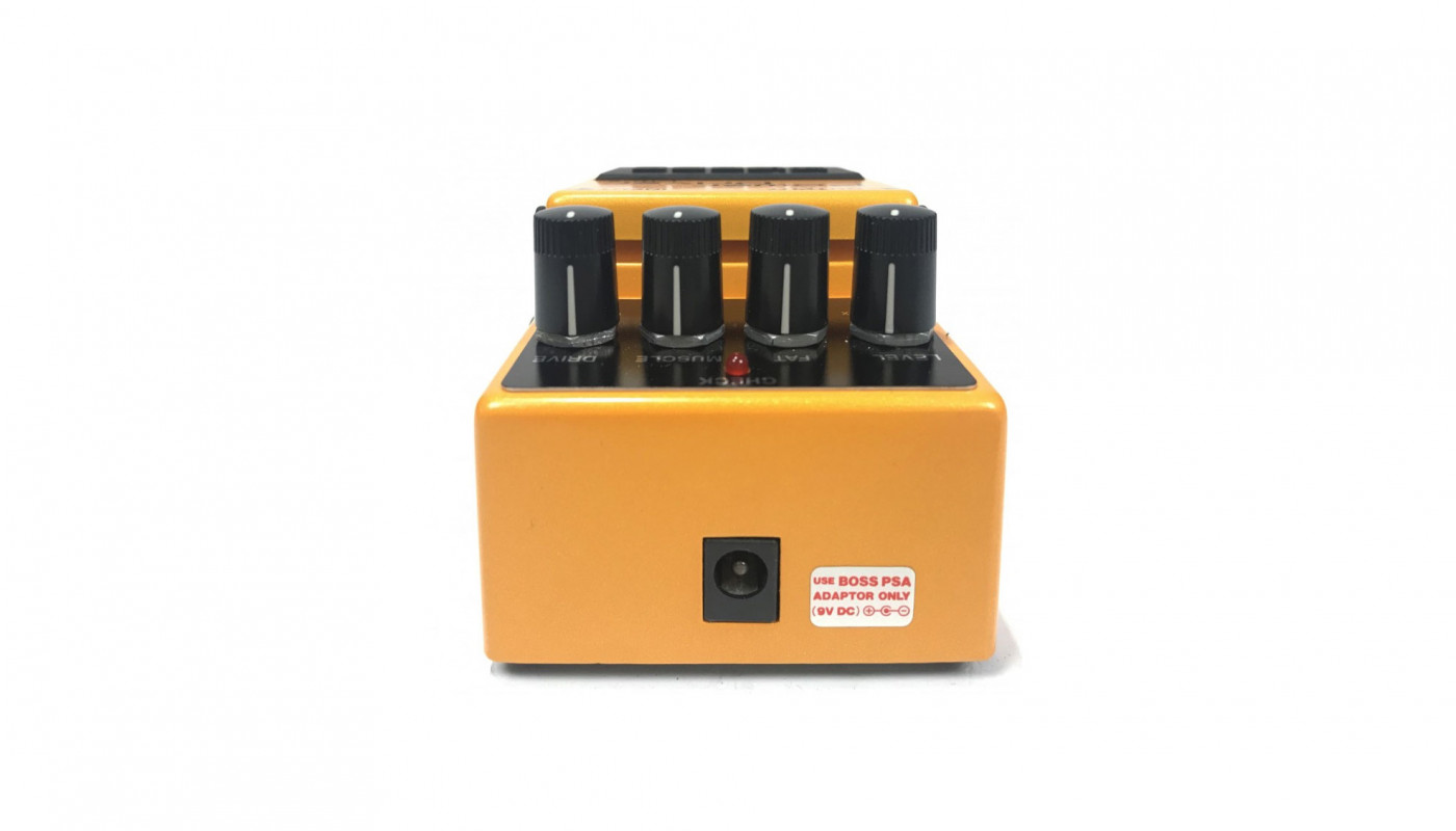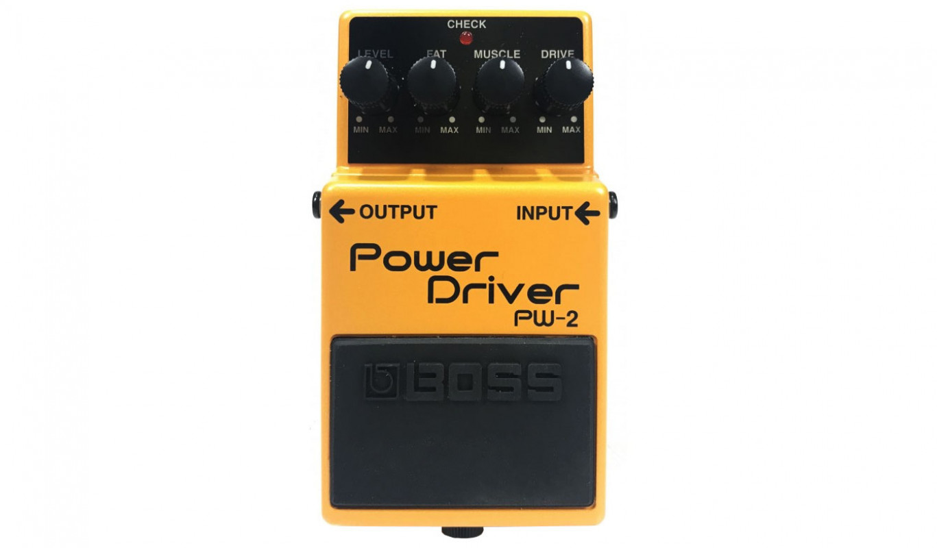 The Boss PW-2 Power Driver is designed to capture the extreme sound of a tube amplifier or a stack-of-4x12 head. The power of the PW-2 is already suggested by its knobs, labeled "Fat" and "Muscle," which recreate extremely thick and bass-heavy distortion sounds, closely resembling the "fuzz" effect. The "Muscle" control radically alters the midrange tones of the distortion, while the "Fat" knob can increase or decrease the low frequencies. Combined with the level tone control, it ensures incredible power.