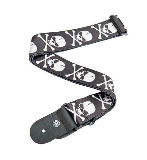D'Addario 50H01 Woven Guitar Strap - Skull and Cross Bone