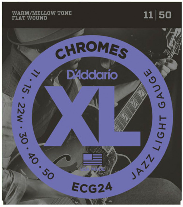 D'Addario ECG24 Chromes for Electric Guitar, Flat Wound, Jazz Light, 11-50