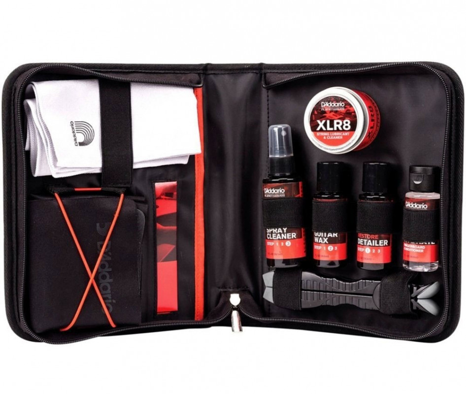 The D'Addario Instrument Care Kit provides the best cleaning and maintenance products for your instrument, including cleaning polishes, fretboard hydration products, polishing cloths, fret cleaning products, a neck support, and a mat to rest your instrument on.