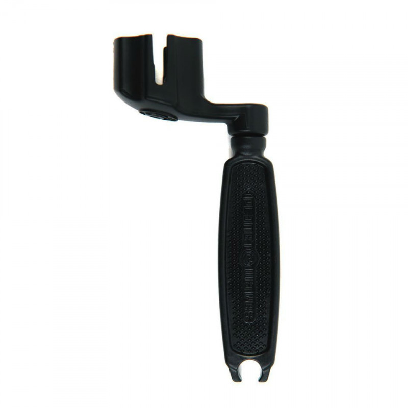 The ergonomic D'Addario string winder, featuring an integrated string cutter and bridge pin puller, is made with precision injection molding and is designed to fit all types of guitars, banjos, and mandolins.