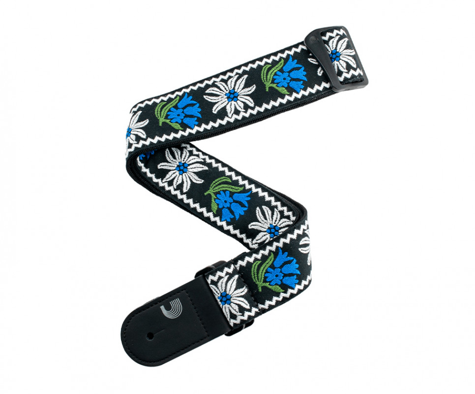 5 cm nylon woven guitar strap featuring an exclusive floral pattern inspired by the 1969 Woodstock festival.