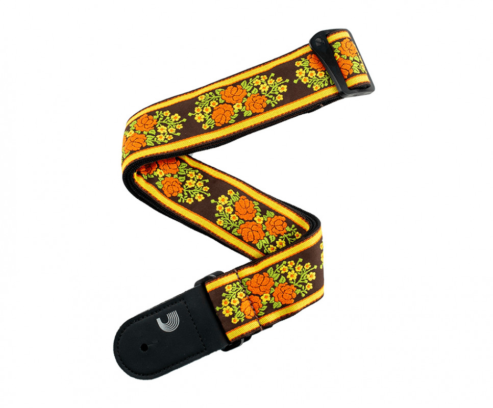 Guitar strap made of 5 cm woven nylon featuring a unique floral pattern inspired by the 1969 Woodstock festival.