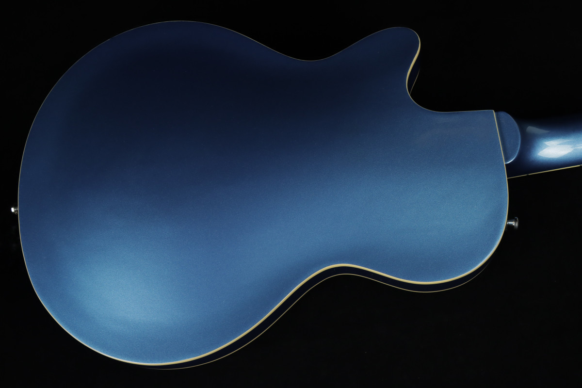 The Semi-Hollow body, featuring a spruce top and laminated maple back and sides, is equipped with a central block that ensures increased resistance to unwanted feedback.