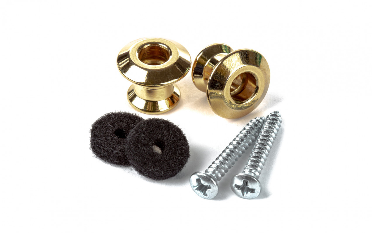 These strap buttons feature a wide flange to securely hold the strap and instrument in place.