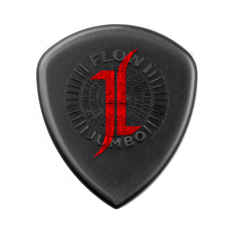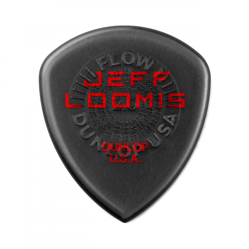 The Dunlop Jeff Loomis Custom Flow Jumbo offers the speed and precision that Jeff requires for his virtuosic playing style. The Ultem material ensures a quick and smooth release, along with a robust tone that adds body to fast, note-heavy solos. The Flow Jumbo shape provides superior control and precise attack.