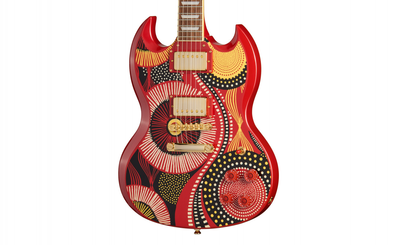 Based on the Muse SG, this SG interprets Fatoumata's style in a direct and personal manner. The mahogany body features her signature graphics, while the mahogany neck with a Custom "C" profile ensures smooth and comfortable playability.