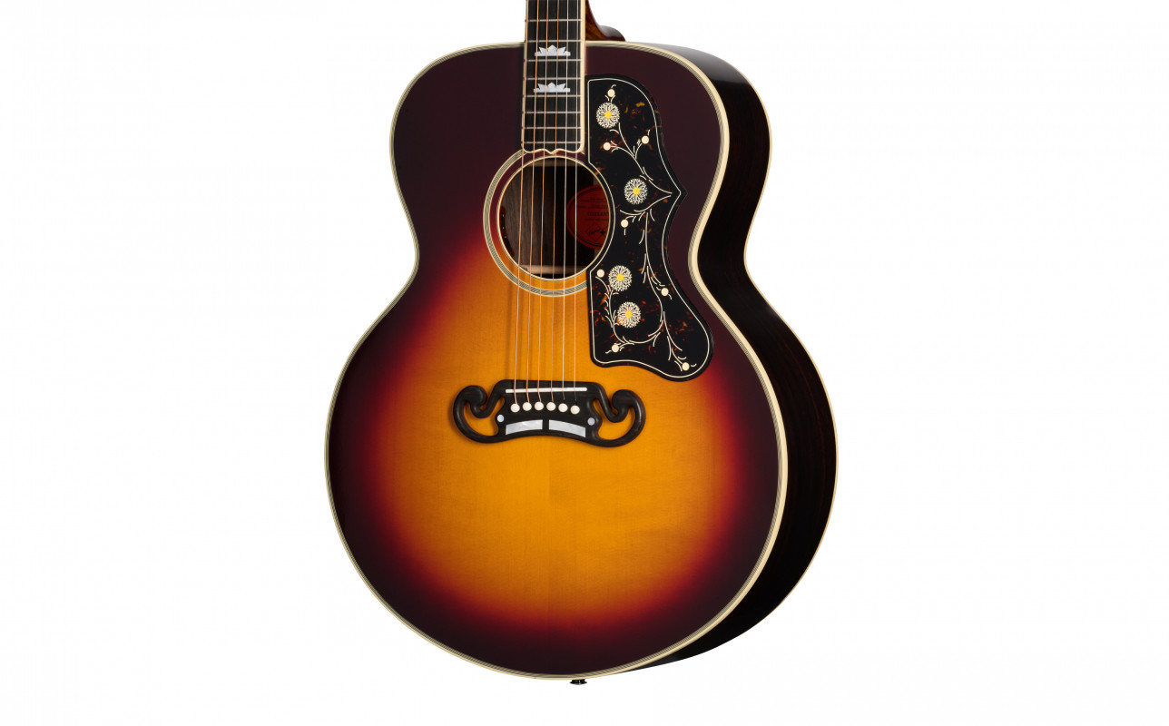The Pre-War SJ-200 Rosewood Reissue is part of the Inspired by Gibson Custom Collection and is a faithful reproduction of the iconic SJ-200, crafted in the Gibson Acoustic workshops in Bozeman, Montana, and offered at a significantly more accessible price.
