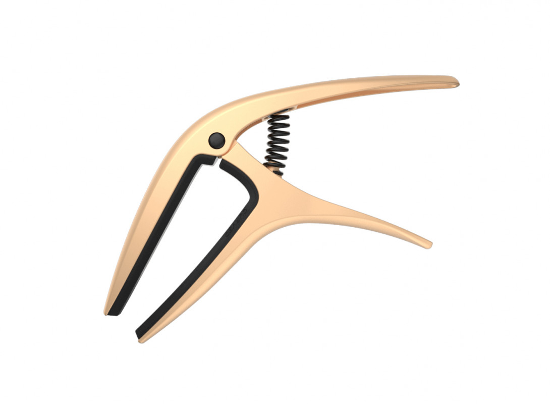 The ergonomic features of the Ernie Ball Axis Capo allow for quick and precise position changes with one hand. A double curvature design fits flat or curved fretboards, ensuring buzz-free operation on both 6-string and 7-string electric and acoustic guitars.
