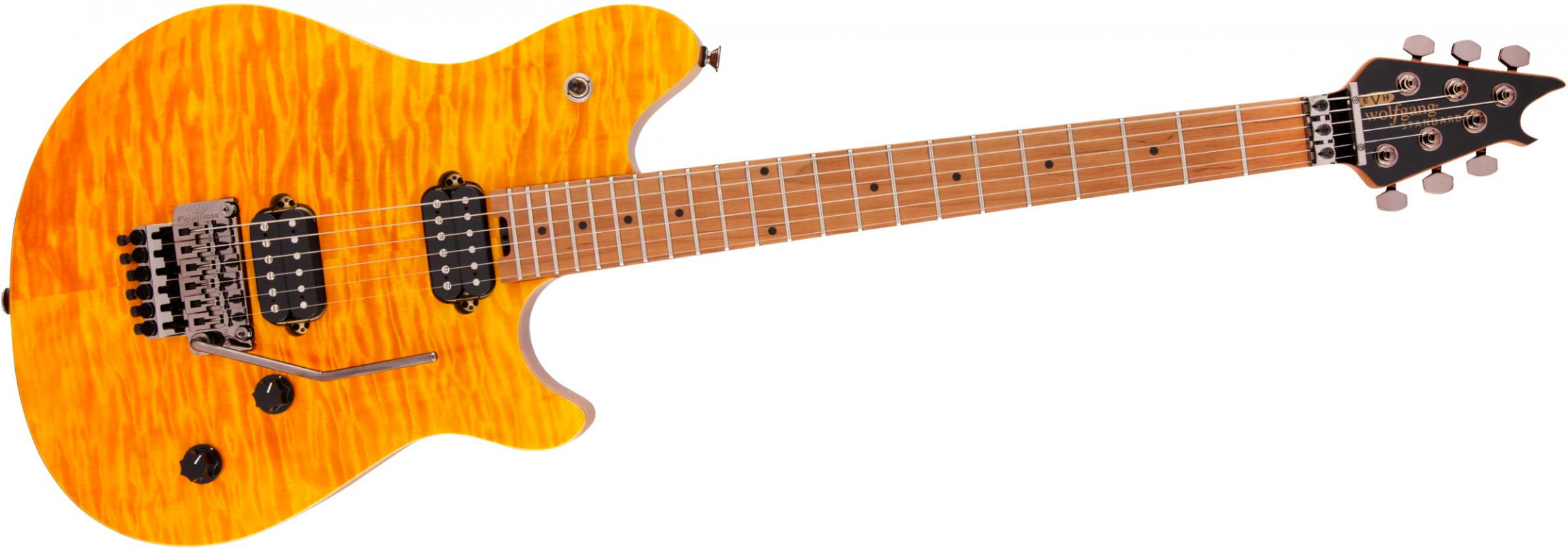 The EVH Wolfgang WG Standard QM offers many of the remarkable features of its more expensive siblings. This guitar features a basswood body, a quilted maple top, and a roasted maple neck with graphite reinforcement rods.