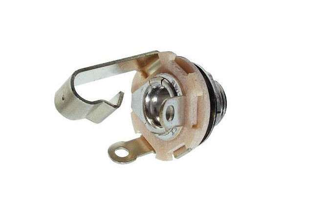 Original 1/4" output jack replacement with 2 conductors, the same one installed on many Fender guitars from the 1950s to the present day.