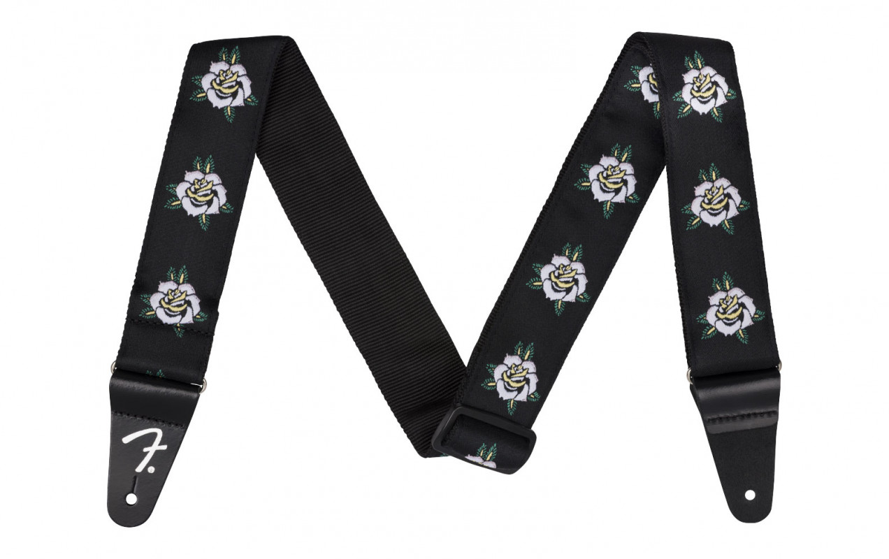 The Fender Rose Strap combines classic style with comfort suitable for everyday use. It is made from woven jacquard fabric featuring a rose pattern and has a durable nylon backing designed to ensure longevity.