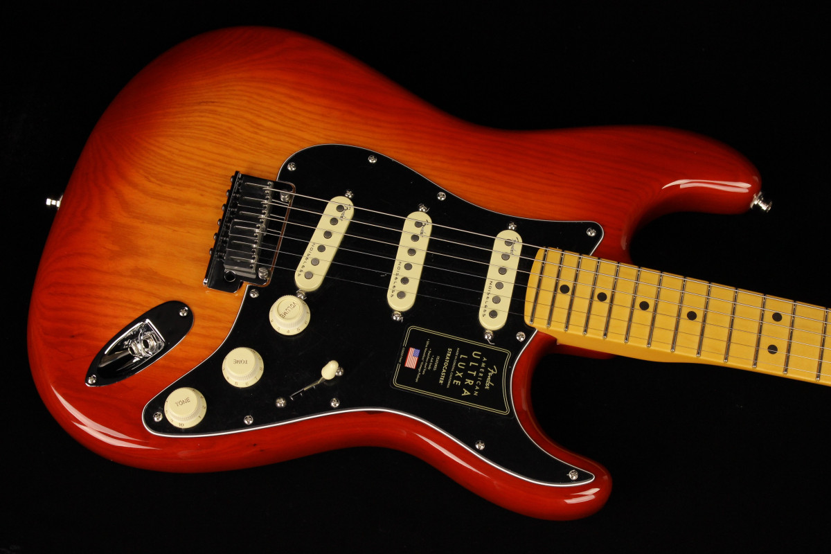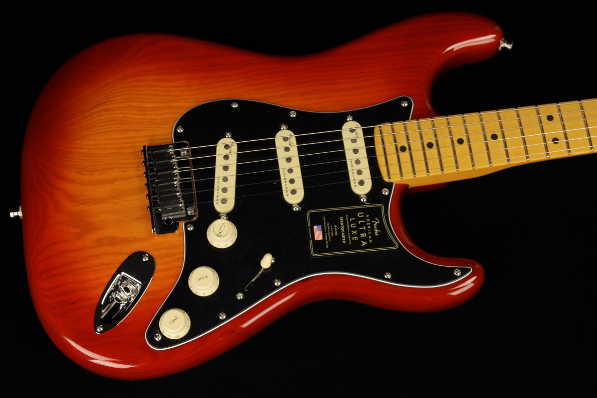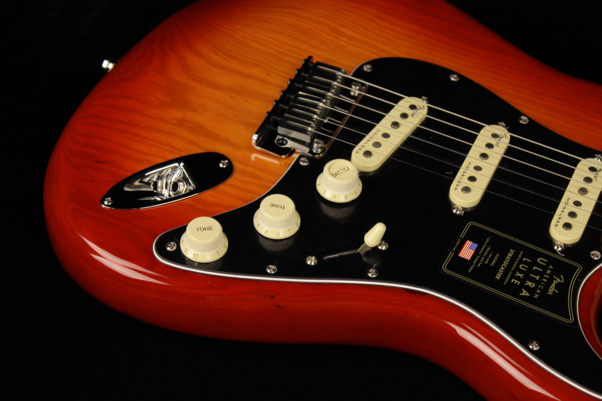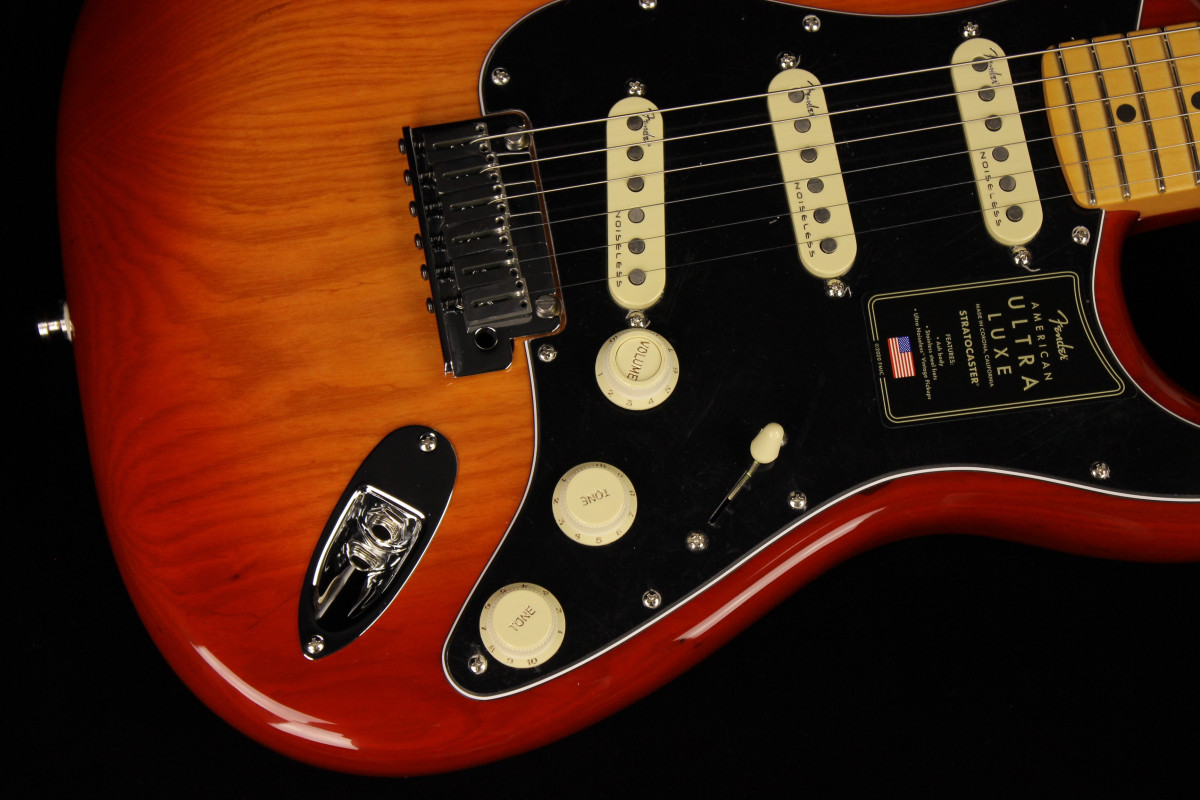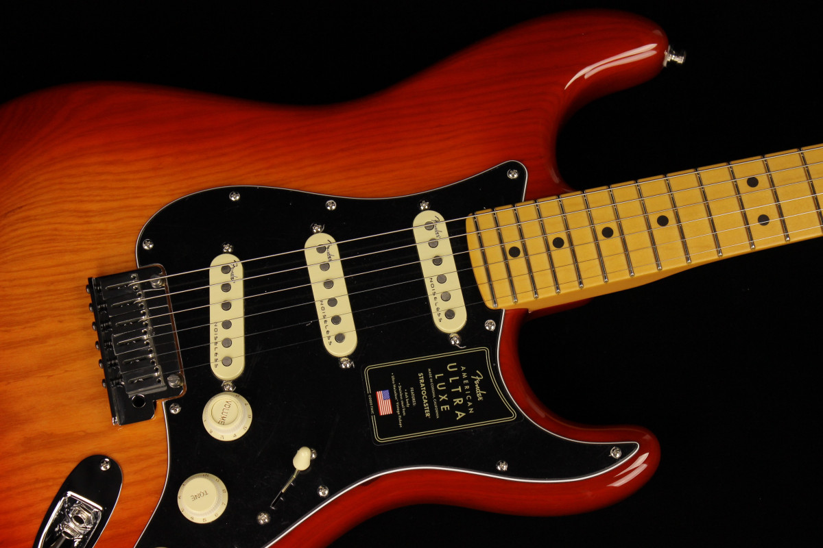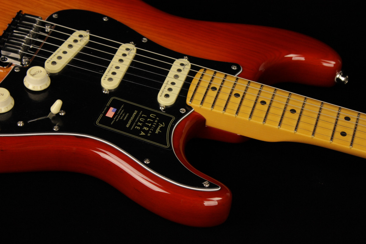 For players who demand the ultimate in performance and tone, American Ultra is our most advanced series of guitars and basses. Featuring stainless-steel frets and eye-catching custom colors with matching painted headcaps, the American Ultra Luxe Stratocaster is Ultra – elevated.