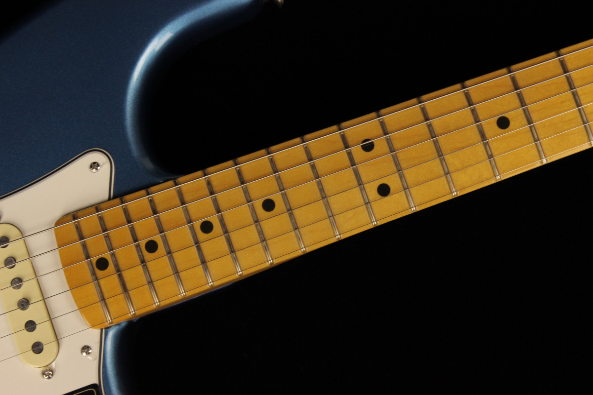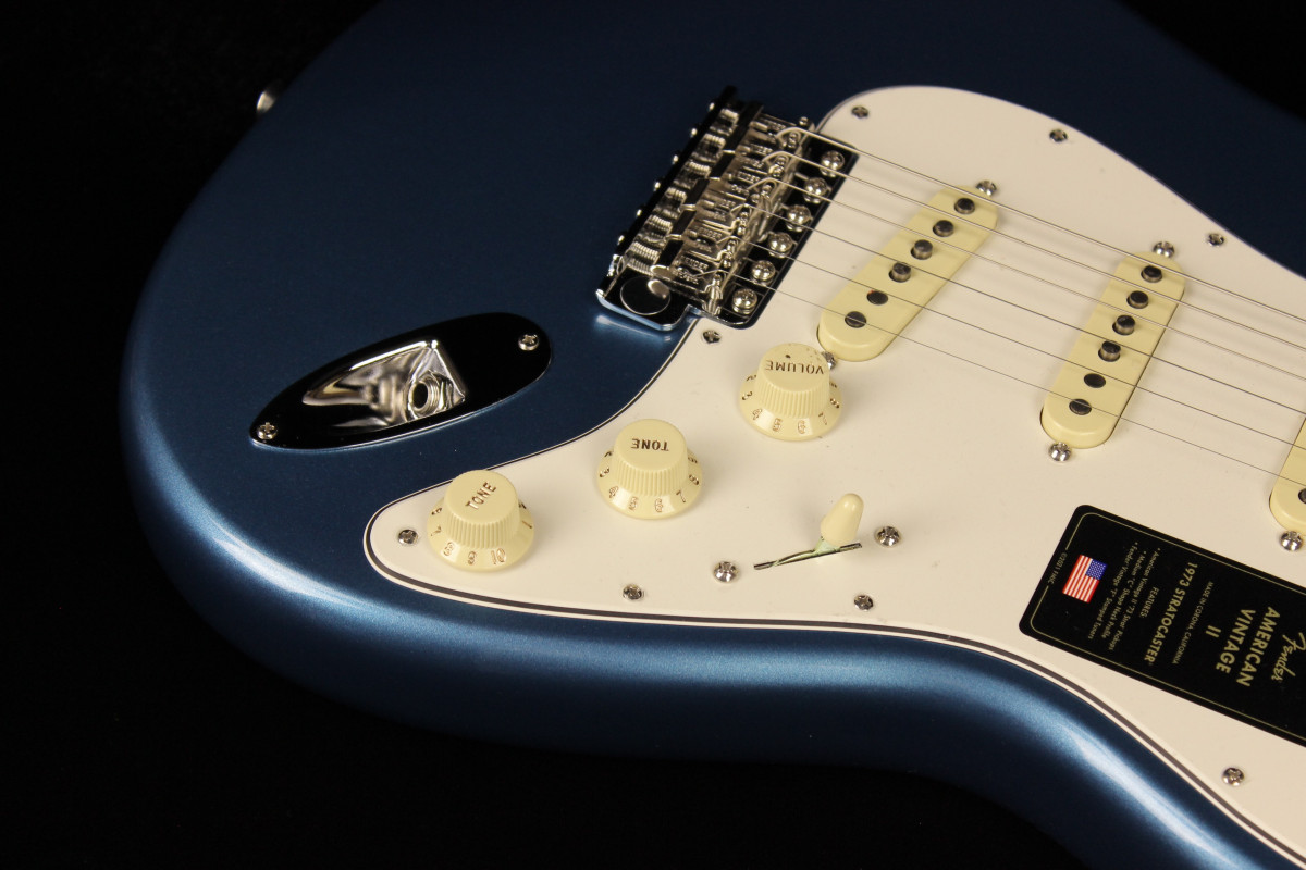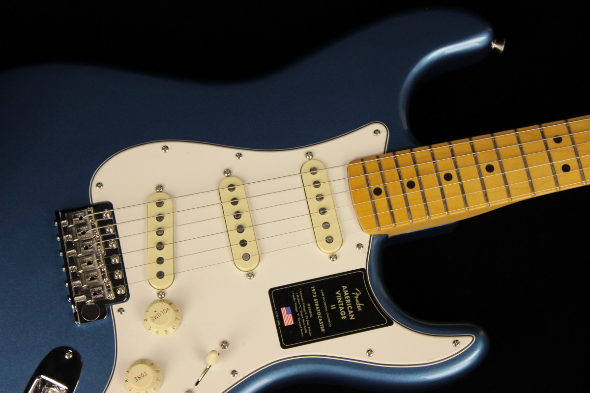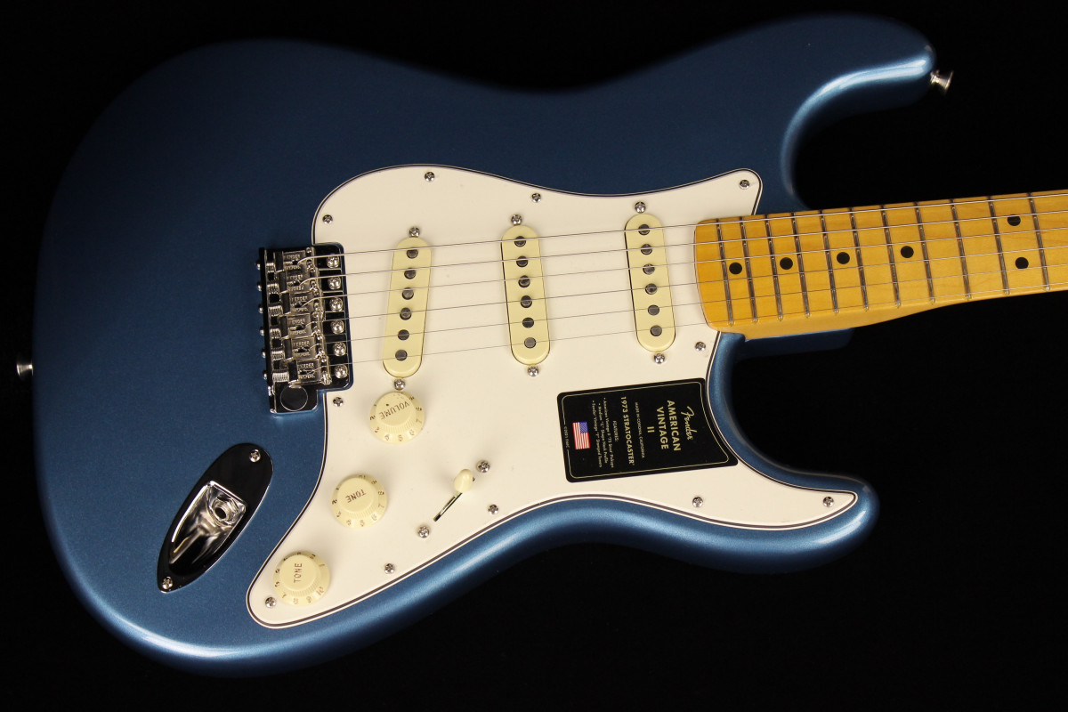 The American Vintage II 1973 Stratocaster® exudes the spirit of the era and is outfitted with a trio of Pure Vintage '73 staggered pole pickups, a large headstock with dual string trees, a convenient “Bullet” style truss rod nut and a three-bolt neck plate with Micro-Tilt™ mechanism. The “C”-shape maple neck plays like a dream with a 7.25” radius rosewood or maple fingerboard and vintage tall frets. The guitar is offered in three classic colors over ash: Aged Natural, Lake Placid Blue and Mocha, the latter being the first custom color ever to feature a black pickguard on a Strat®. Additional features include vintage-style “F” stamped tuners and a synchronized tremolo with bent steel saddles and cold rolled steel block.