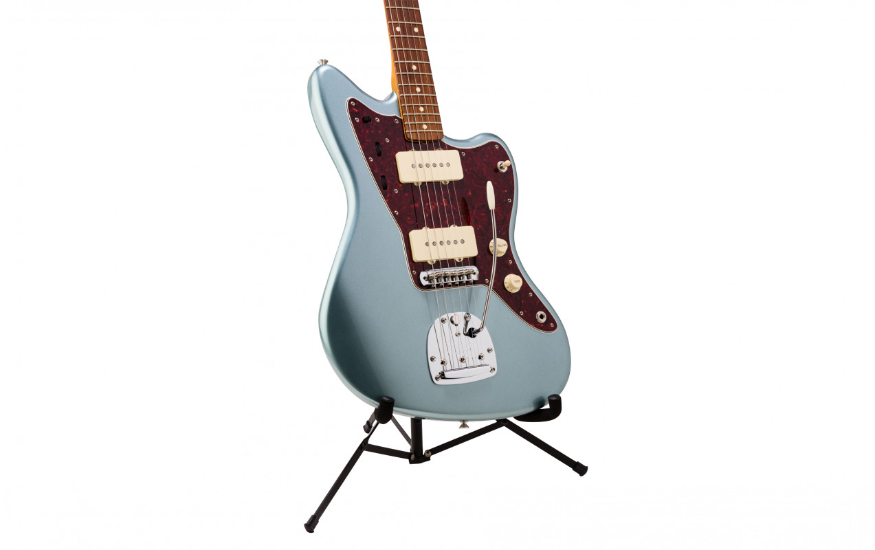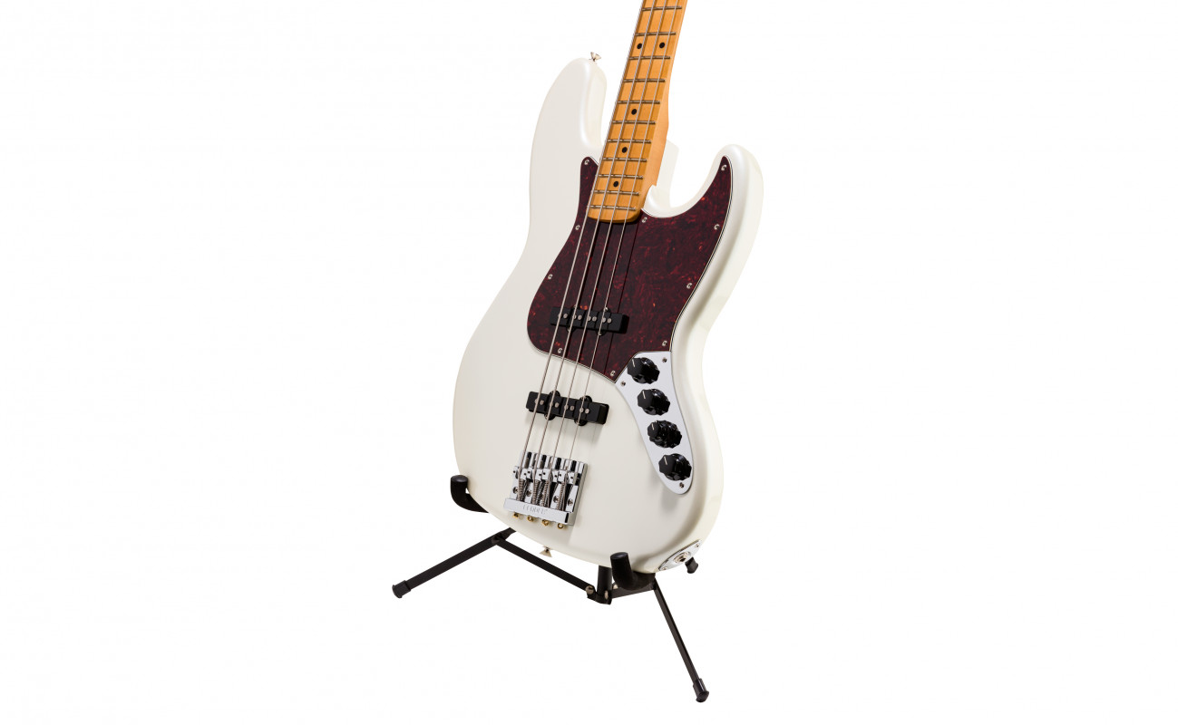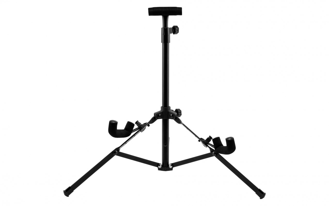 This stand securely supports your offset body bass guitar. When folded, it is compact enough to fit in the accessory compartment of your guitar bag.