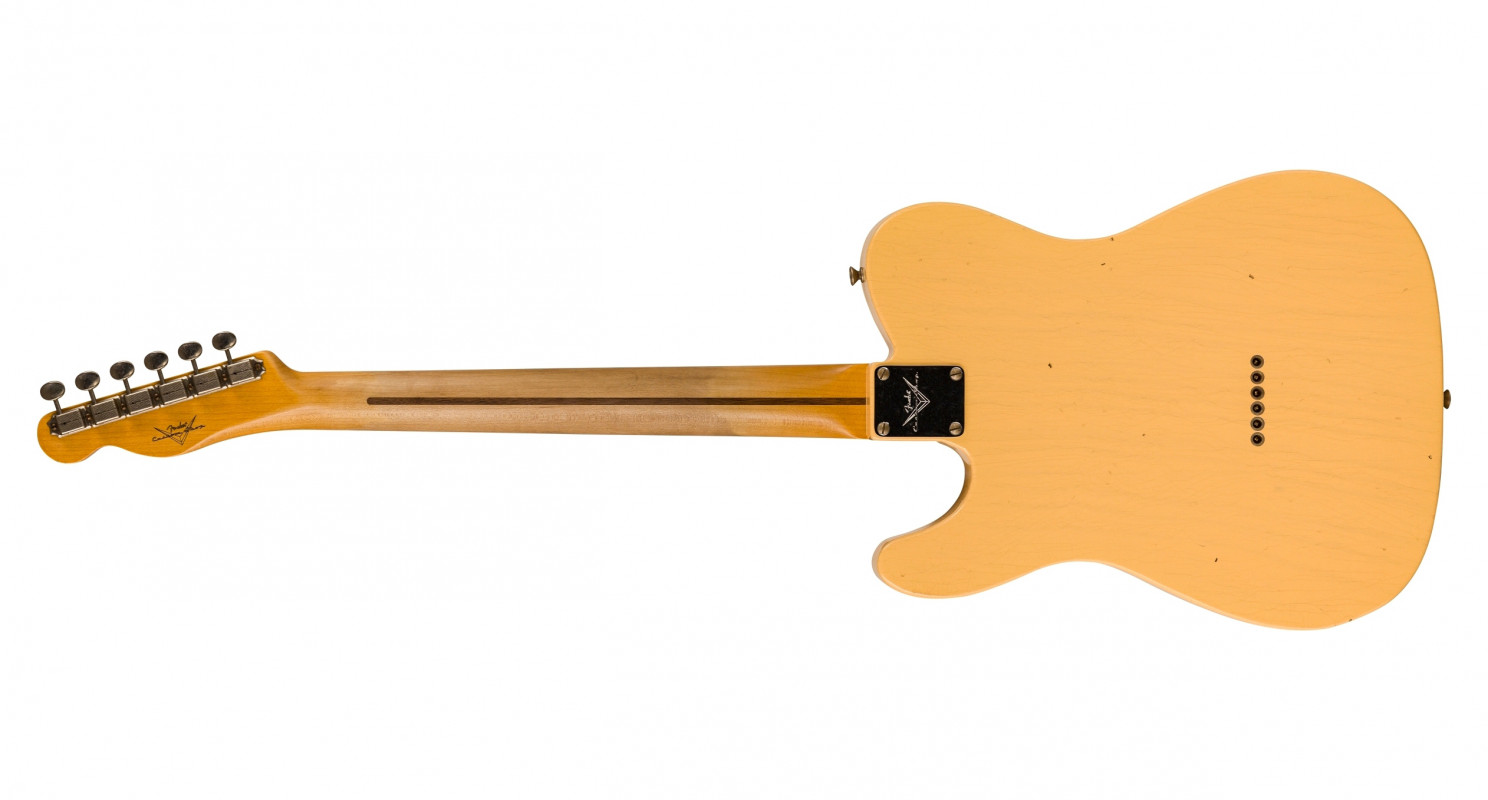 The one-piece rift sawn maple neck is sculpted with a 1950-style "Blackguard" profile for comfortable and period-correct full-hand feel, topped by a vintage compound-radius (7.5”-9.5”) maple fingerboard with 21 medium vintage (47095) frets and a bone nut. Dual Custom Shop hand-wound ’50-’51 Blackguard pickups with modded ’51 Nocaster wiring deliver clear, crisp highs with well-balanced midrange and low end, with the extra versatility of blend control for both pickups.