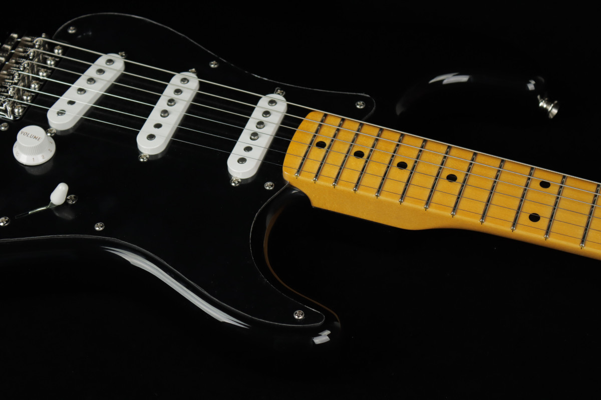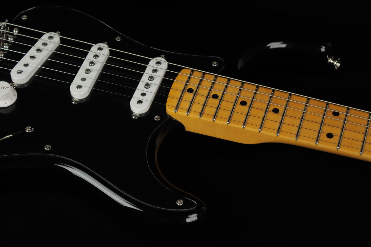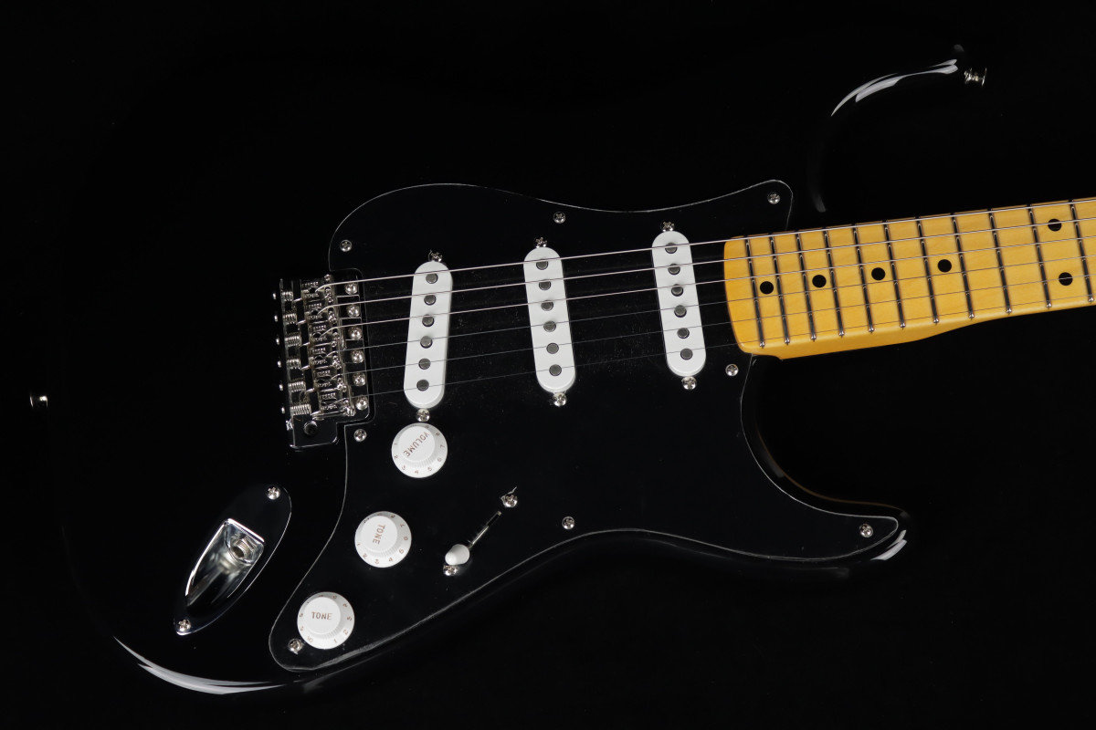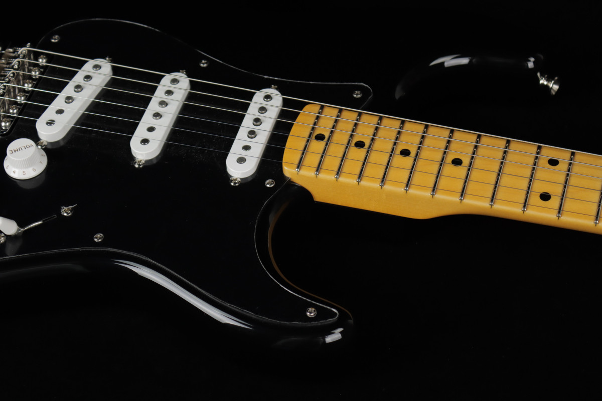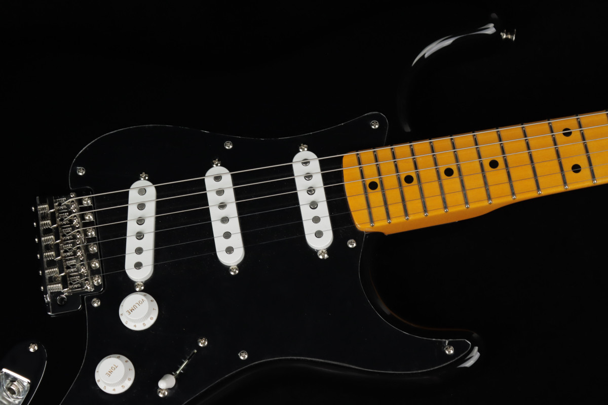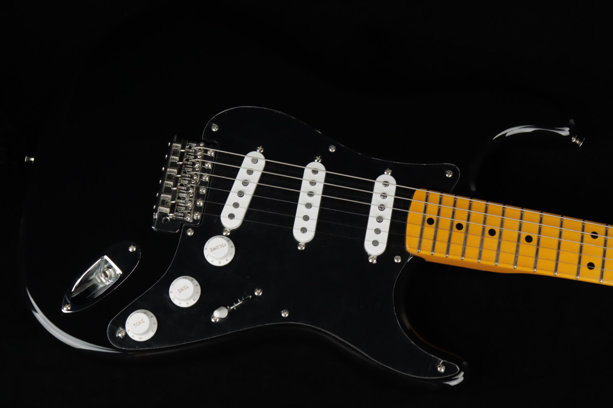 The electronics feature a set of Fender Custom Stratocaster Fat 50's Stratocaster Single-Coil (RWRP middle), on a Modern Stratocaster wiring.