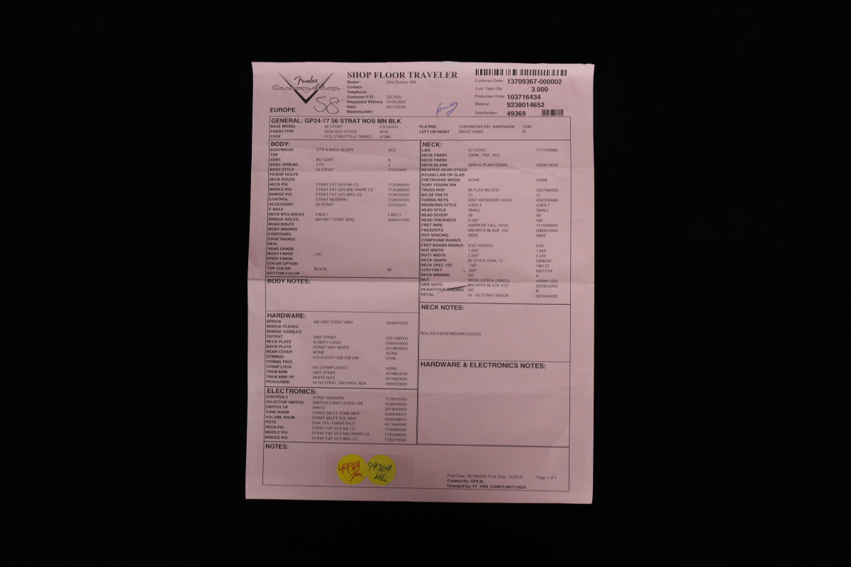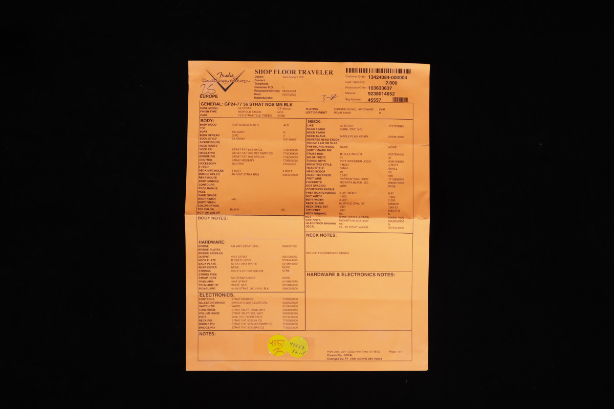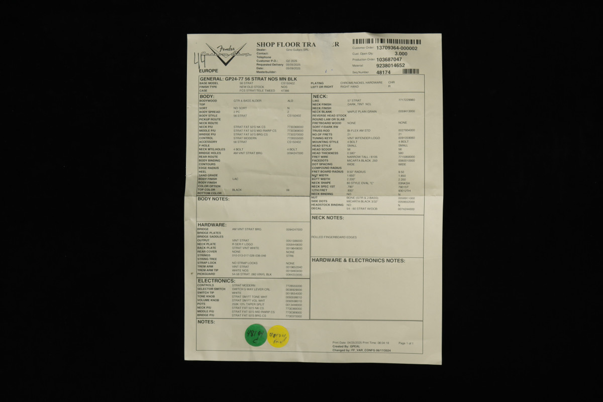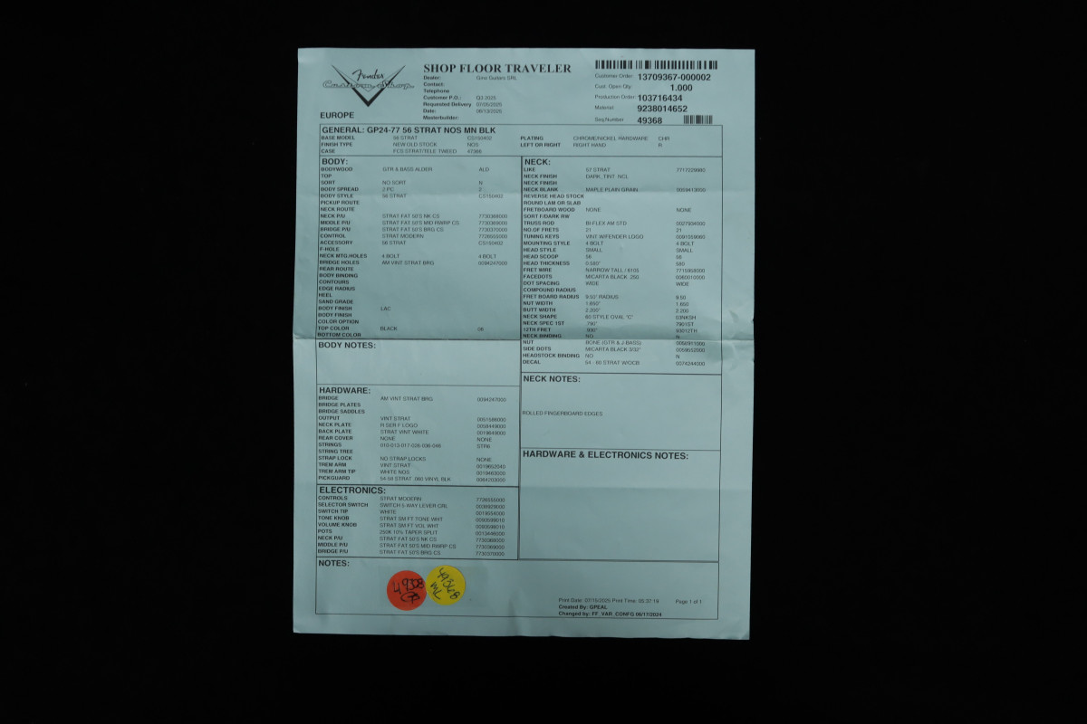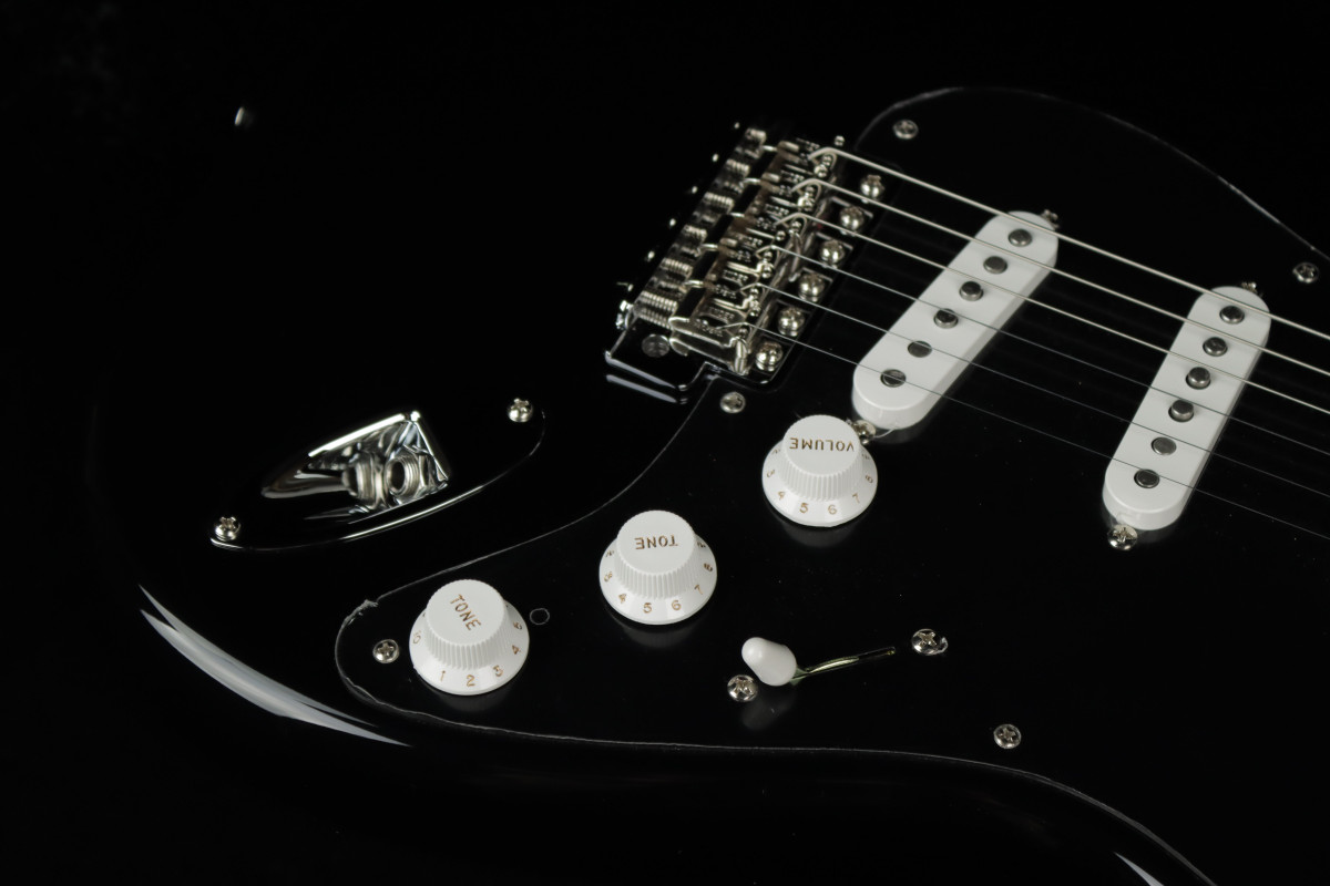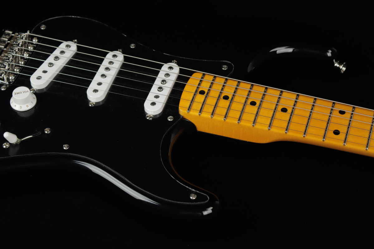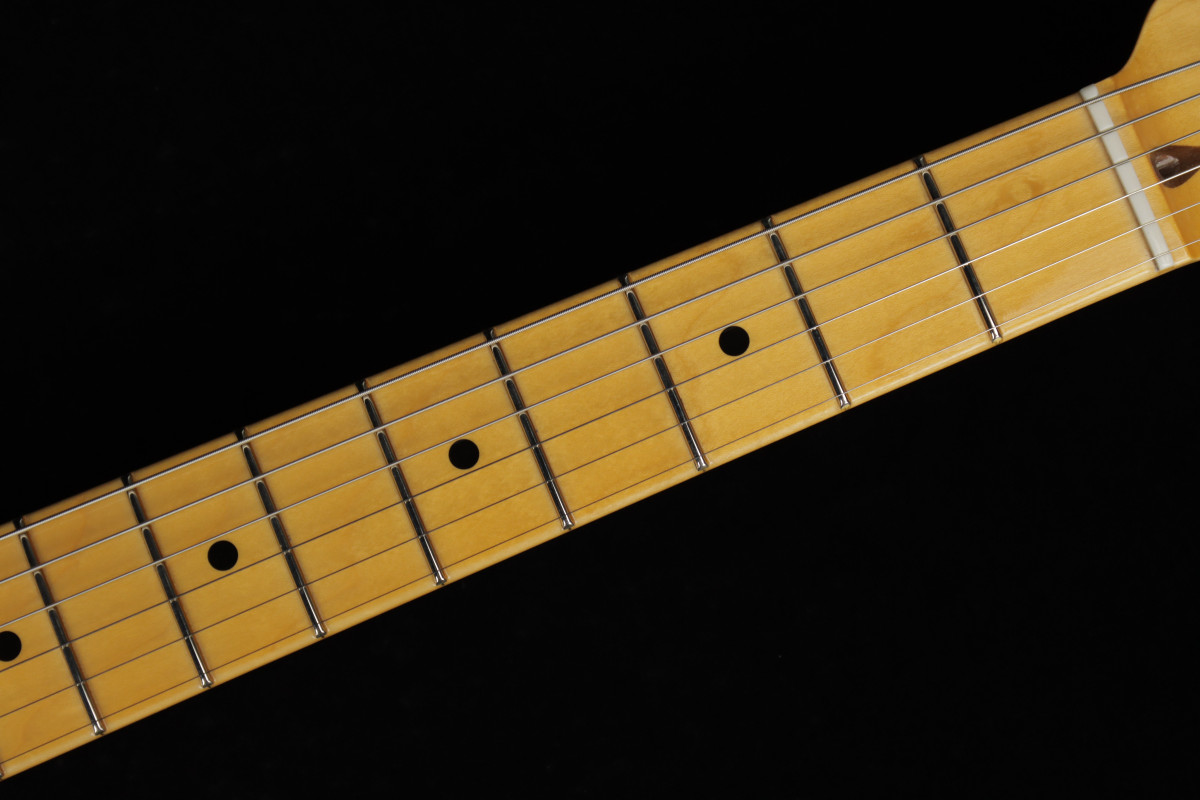 The electronics feature a set of Fender Custom Stratocaster Fat 50's Stratocaster Single-Coil (RWRP middle), on a Modern Stratocaster wiring.