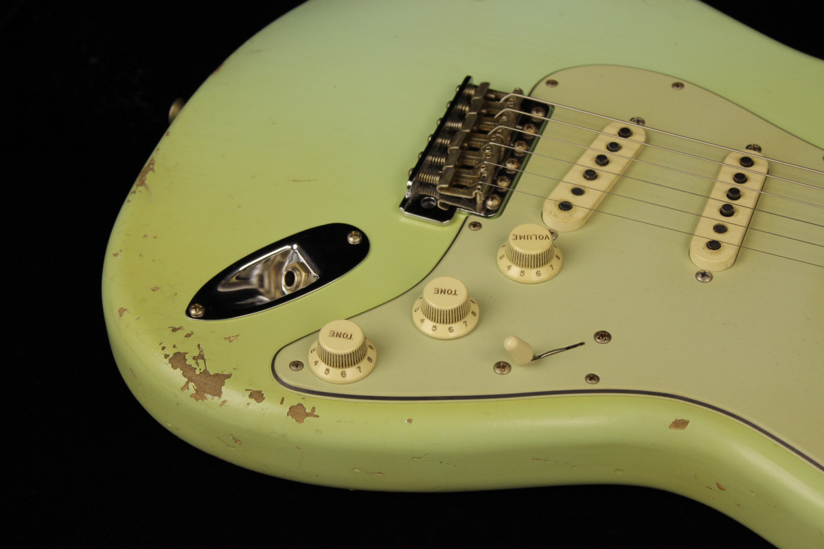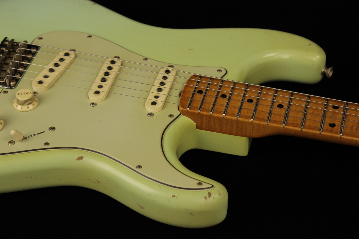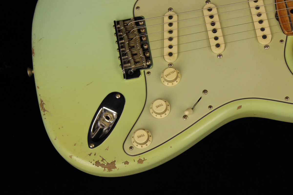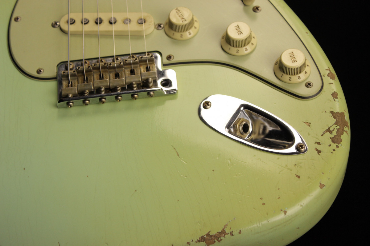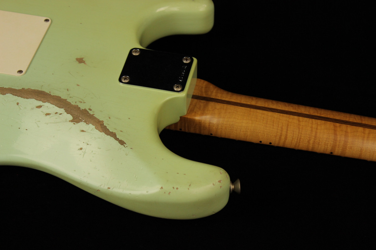 The guitar stand out for his superb Relic job: you can really appreciate the capacities of this young masterbuilder when you look at it closely.