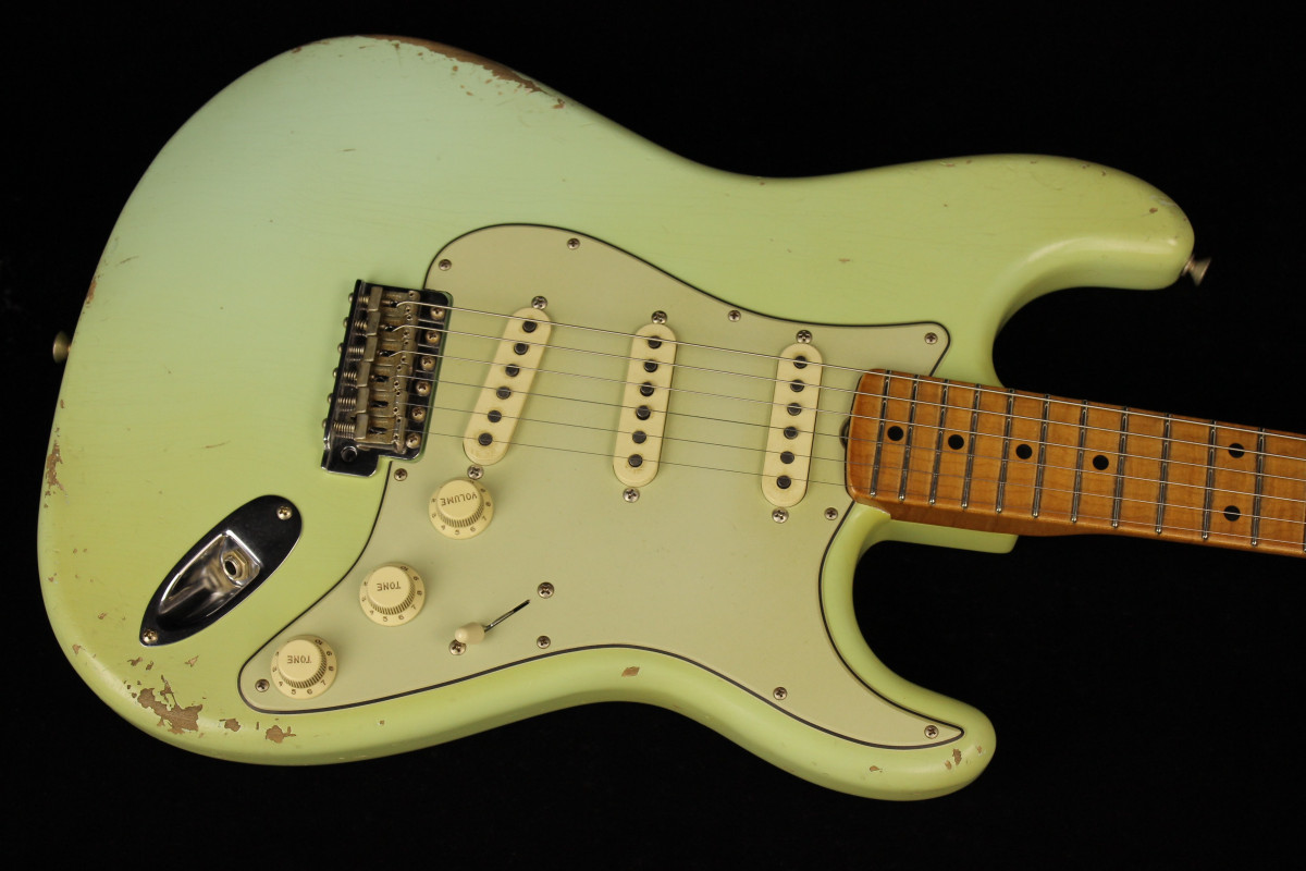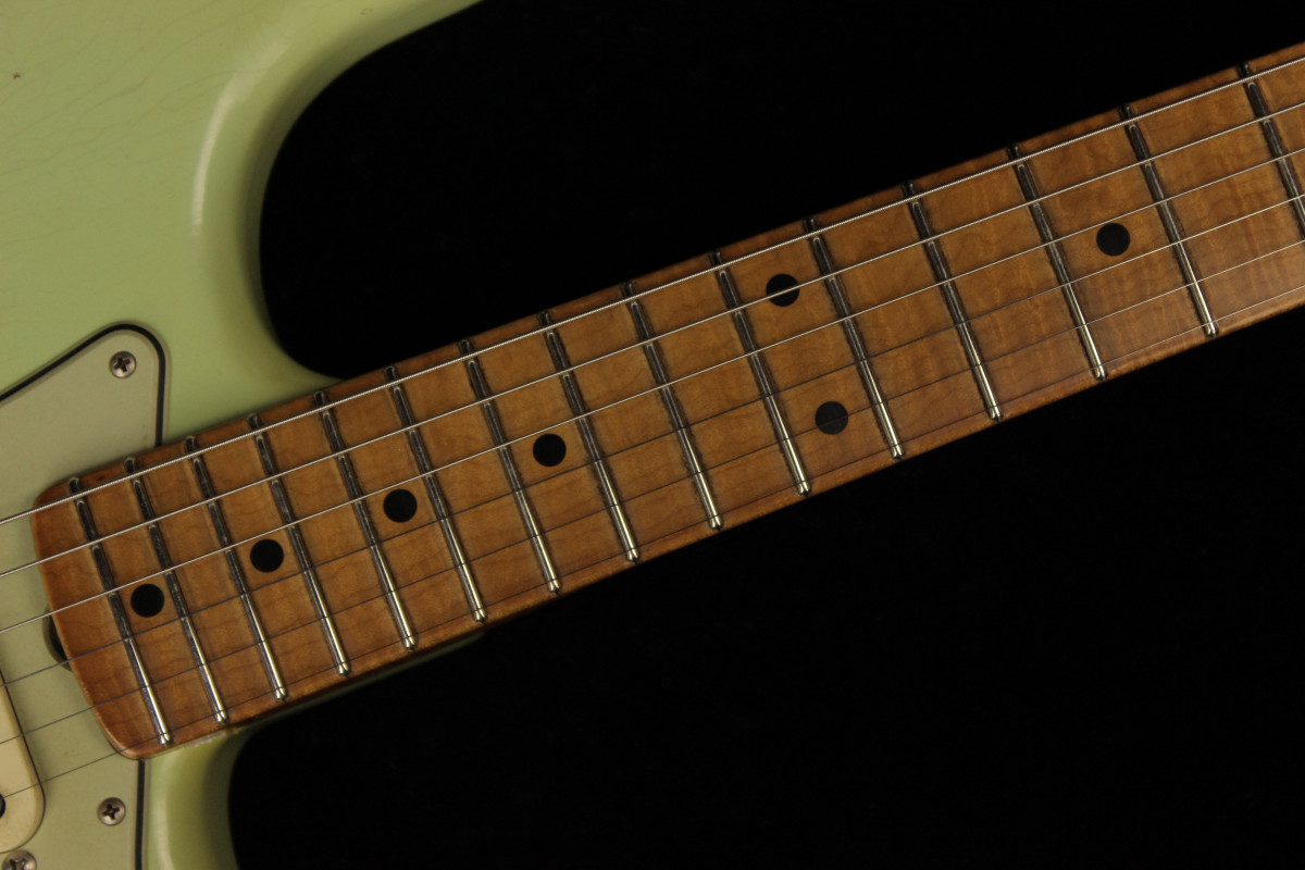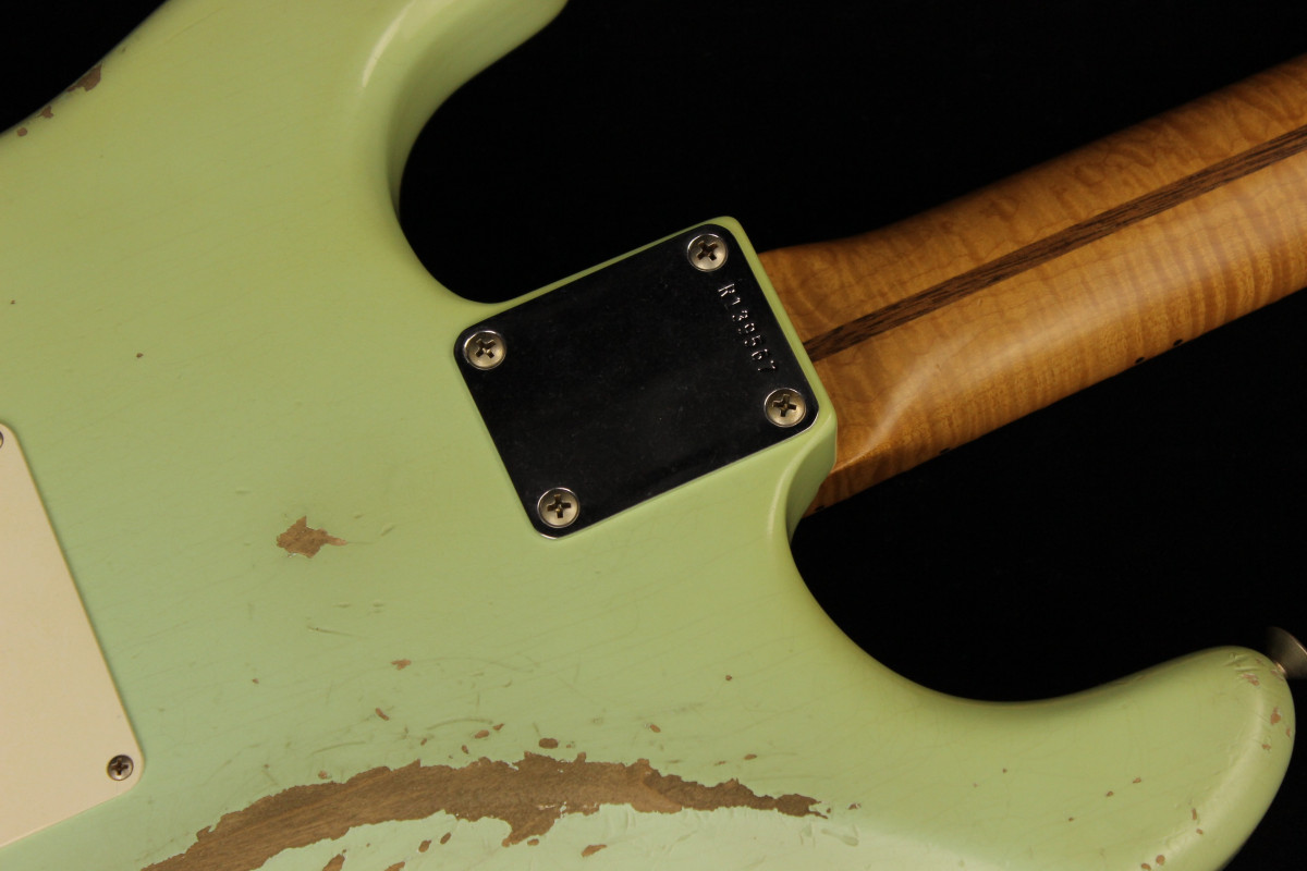 This Fender Custom 1959 Stratocaster Relic Masterbuilt was built by the new Masterbuilder Levi Perry. Despite a newly arrived Levi Perry gained really fastly reputation, thanks to his outstanding Relic jobs and wonderful instruments offered since the beginning.