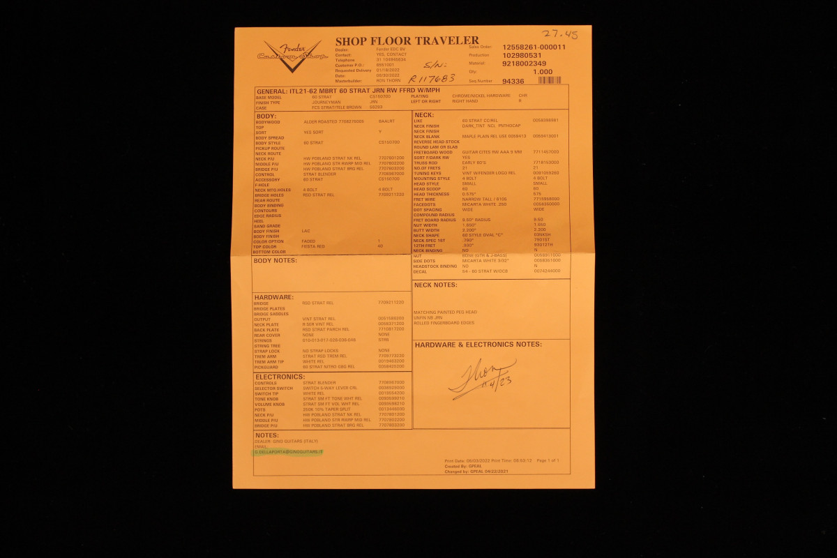 A Masterbuilt instrument, for those who have kept it in their arms at least once, is something beyond the already execptional experience of a Fender Custom Shop Teambuilt.