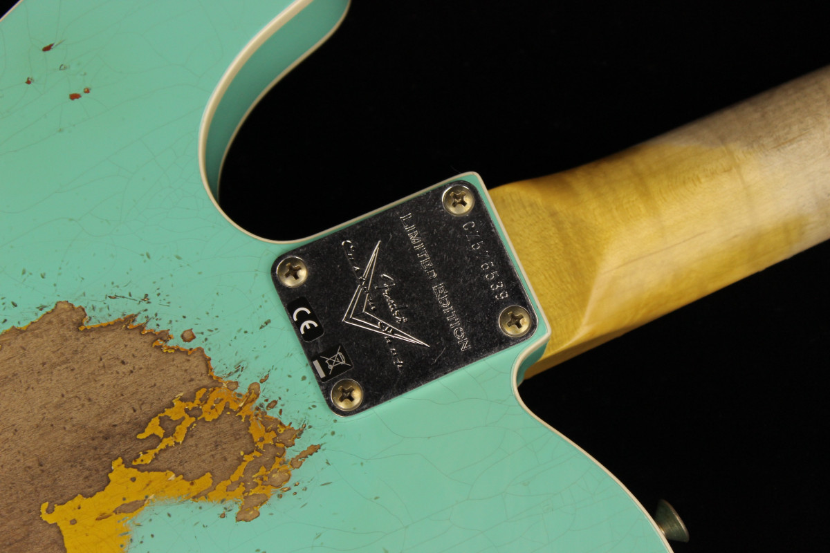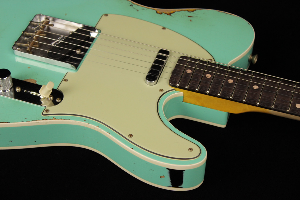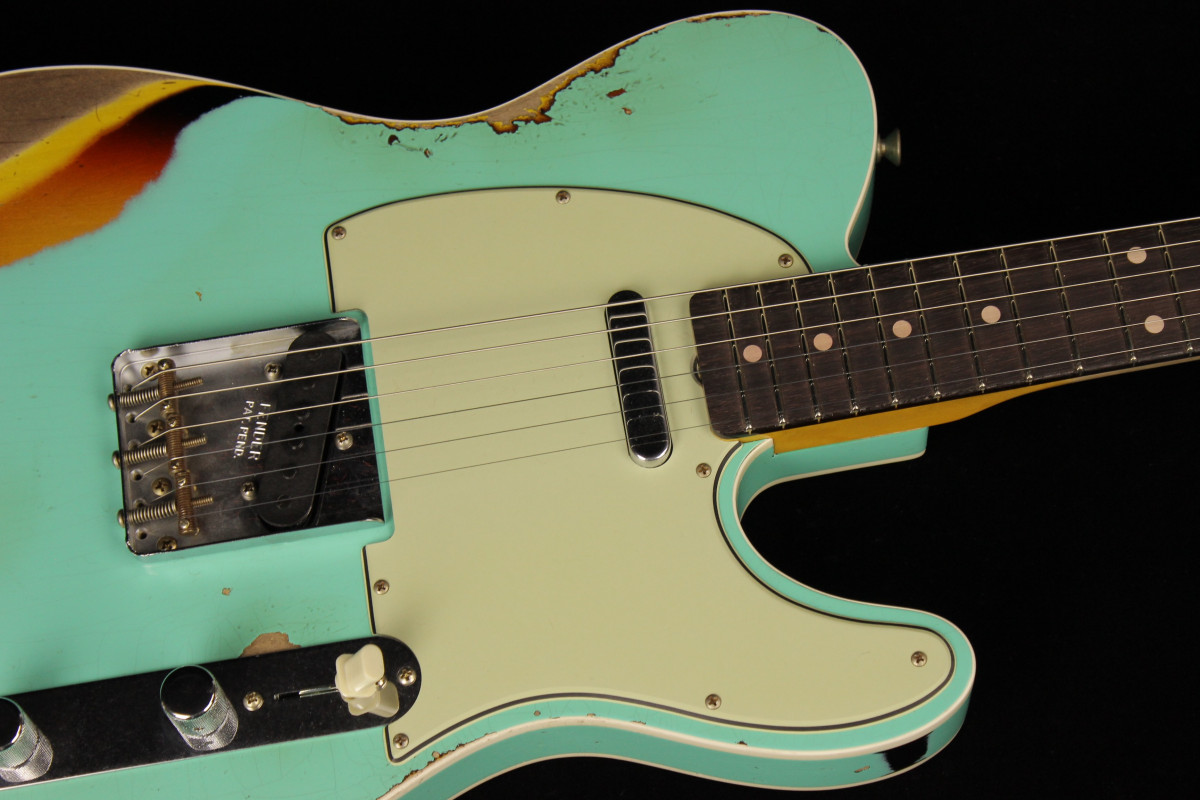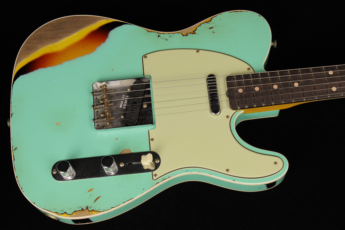 Hand-wound Twisted Tele pickups provide extra output, paired up with a three-way switch and modern Tele wiring. Other features include white “top hat” switch tip, three-ply mint green pickguard, 1960 Tele bridge with threaded steel saddles, vintage-style tuning machines, bone nut and wing string tree. Also includes deluxe hardshell case, strap and certificate of authenticity.