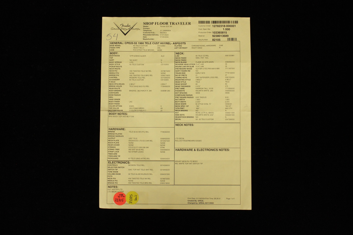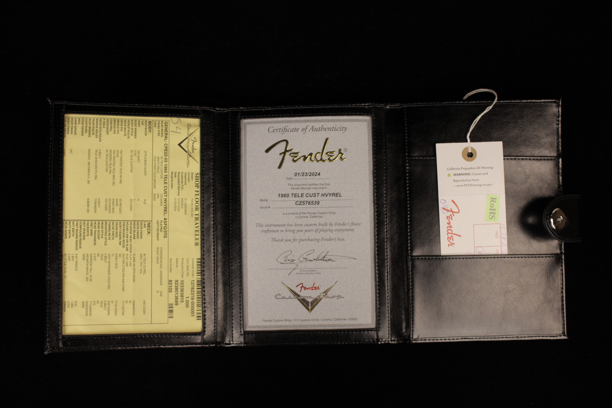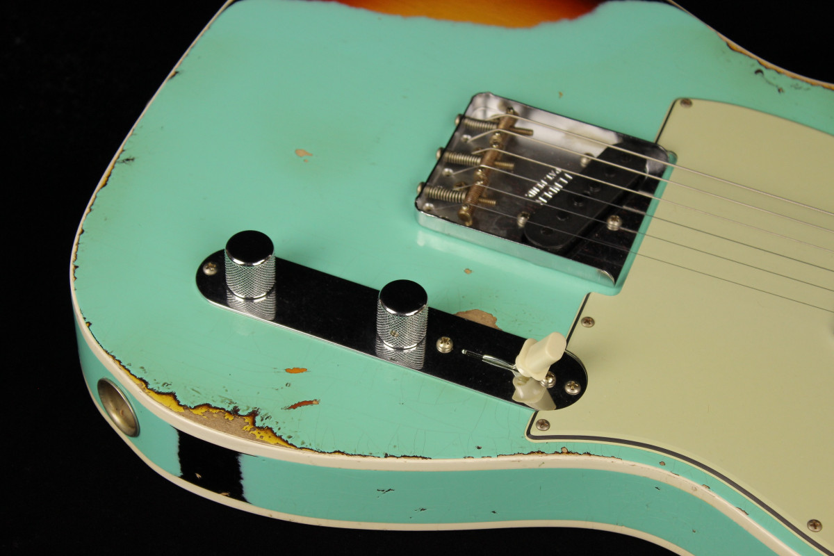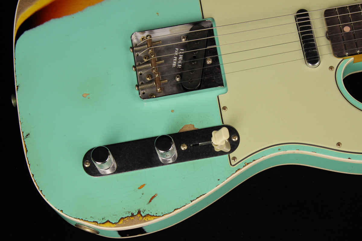 Hand-wound Twisted Tele pickups provide extra output, paired up with a three-way switch and modern Tele wiring. Other features include white “top hat” switch tip, three-ply mint green pickguard, 1960 Tele bridge with threaded steel saddles, vintage-style tuning machines, bone nut and wing string tree. Also includes deluxe hardshell case, strap and certificate of authenticity.