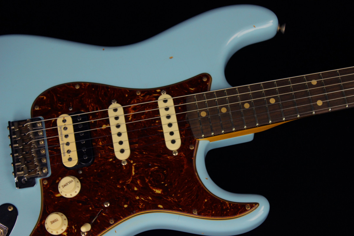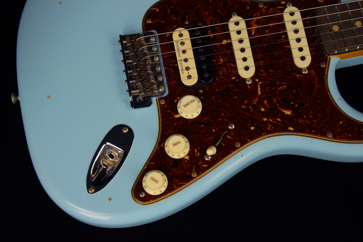 Electronics feature a couple of Fender Custom Shop Handwound Ancho Poblano Stratocaster Single Coil, with the middle one RWRP, a Seymour Duncan JB SH-4 Zebra in bridge position and a Modern Stratocaster wiring.