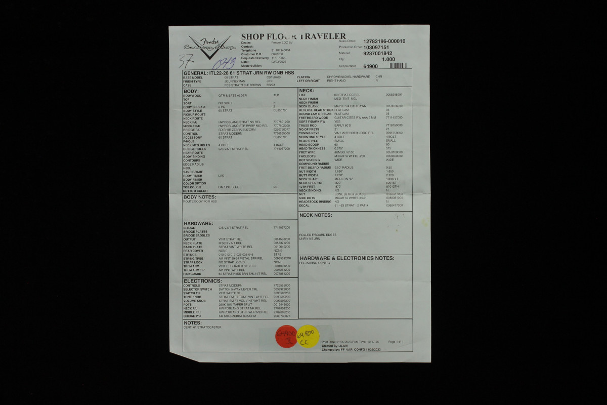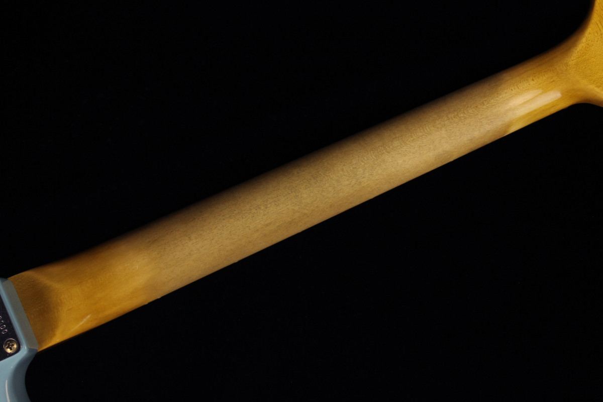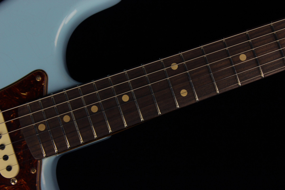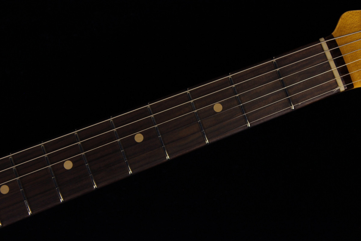 Ordered through the Custom Order program at the Fender Custom Shop this extraordinary instrument features a traditional Alder 2-piece body combined with an Quartersawn Maple neck with medium tint finish and a sort for darkness Rosewood fingerboard with rolled edges.