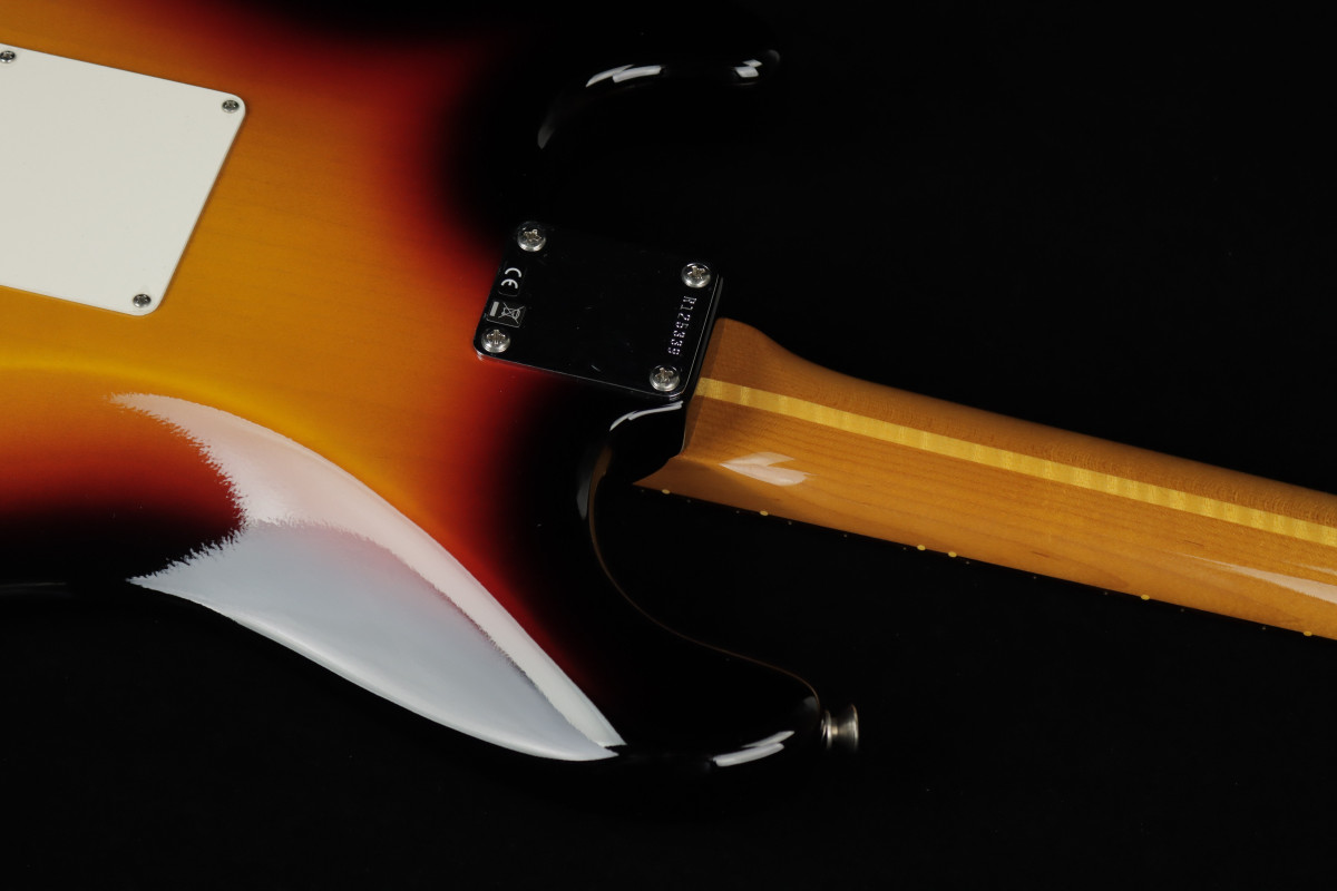 Let's start with the finish: Time Capsule. A very thin layer of Lacquer, without relic treatment, which allows the instrument to resonate in an exceptional way. A finish so thin that in a short time it will age right under the hands of the guitarist, giving the instrument that authentically worn look.