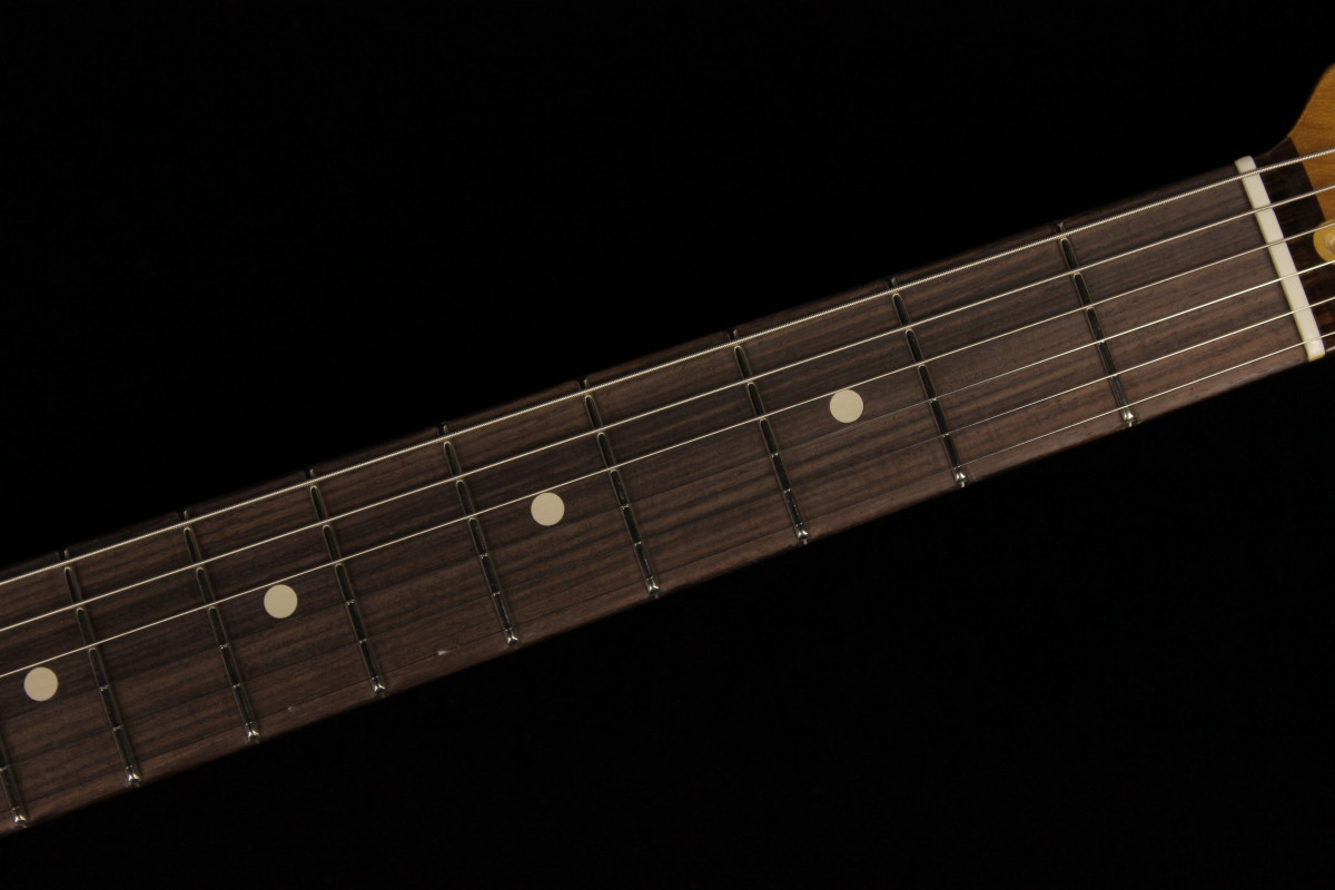 Moving on to the neck we find a comfortable Mid 60's Oval "C" profile combined with a 22 fret Narrow Tall / 6105 fretboard with a modern 12" radius. Then we selected a nut with a traditional 1.650" width, just like the Golden Era Fender,