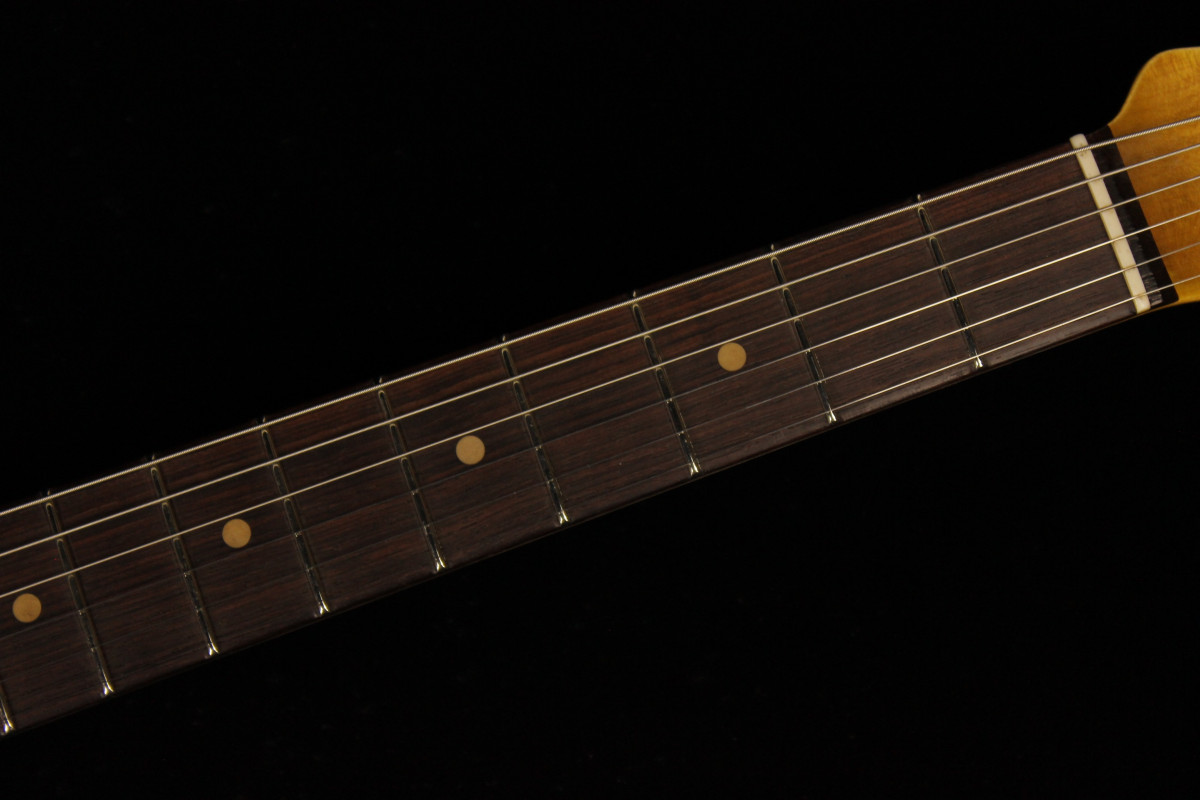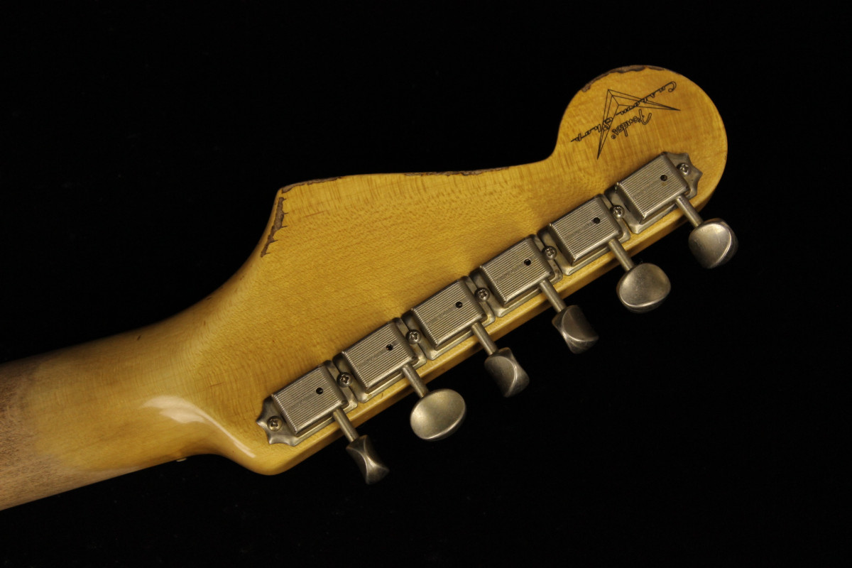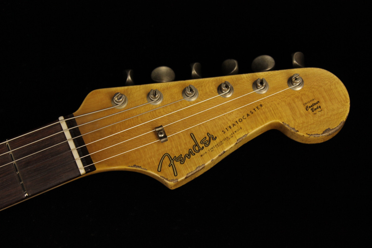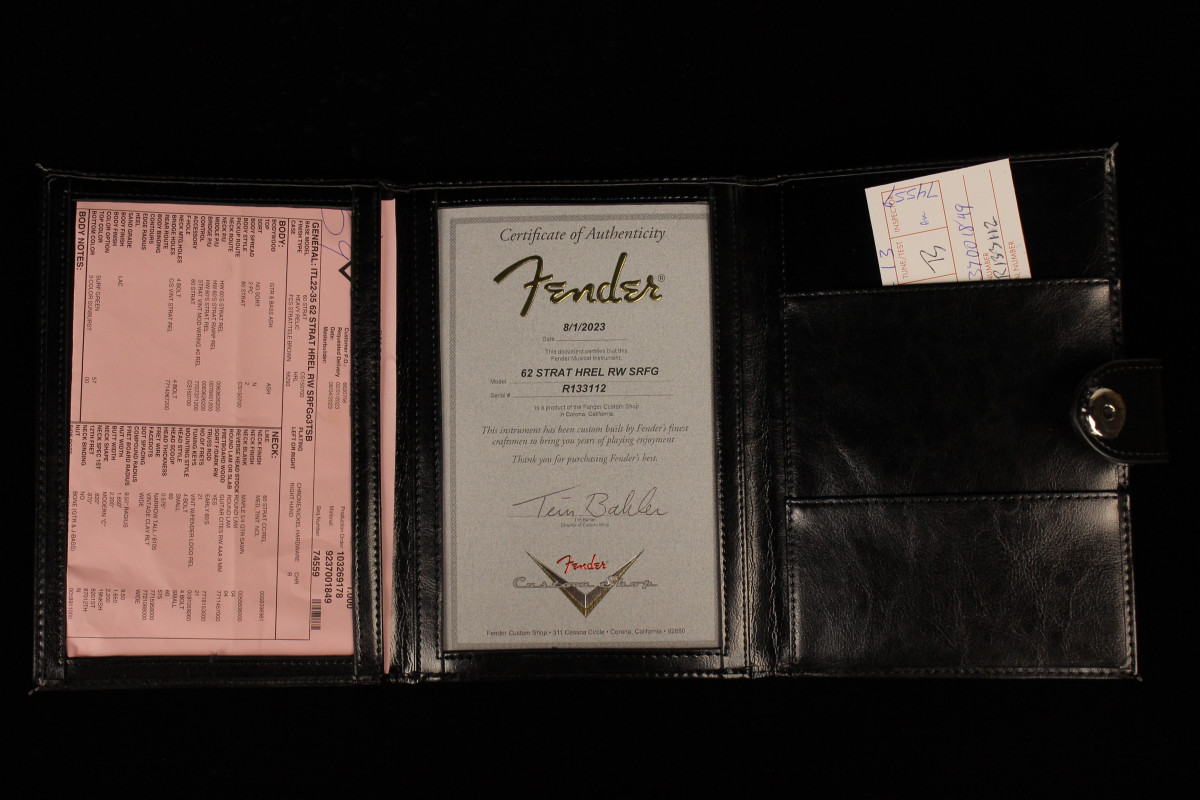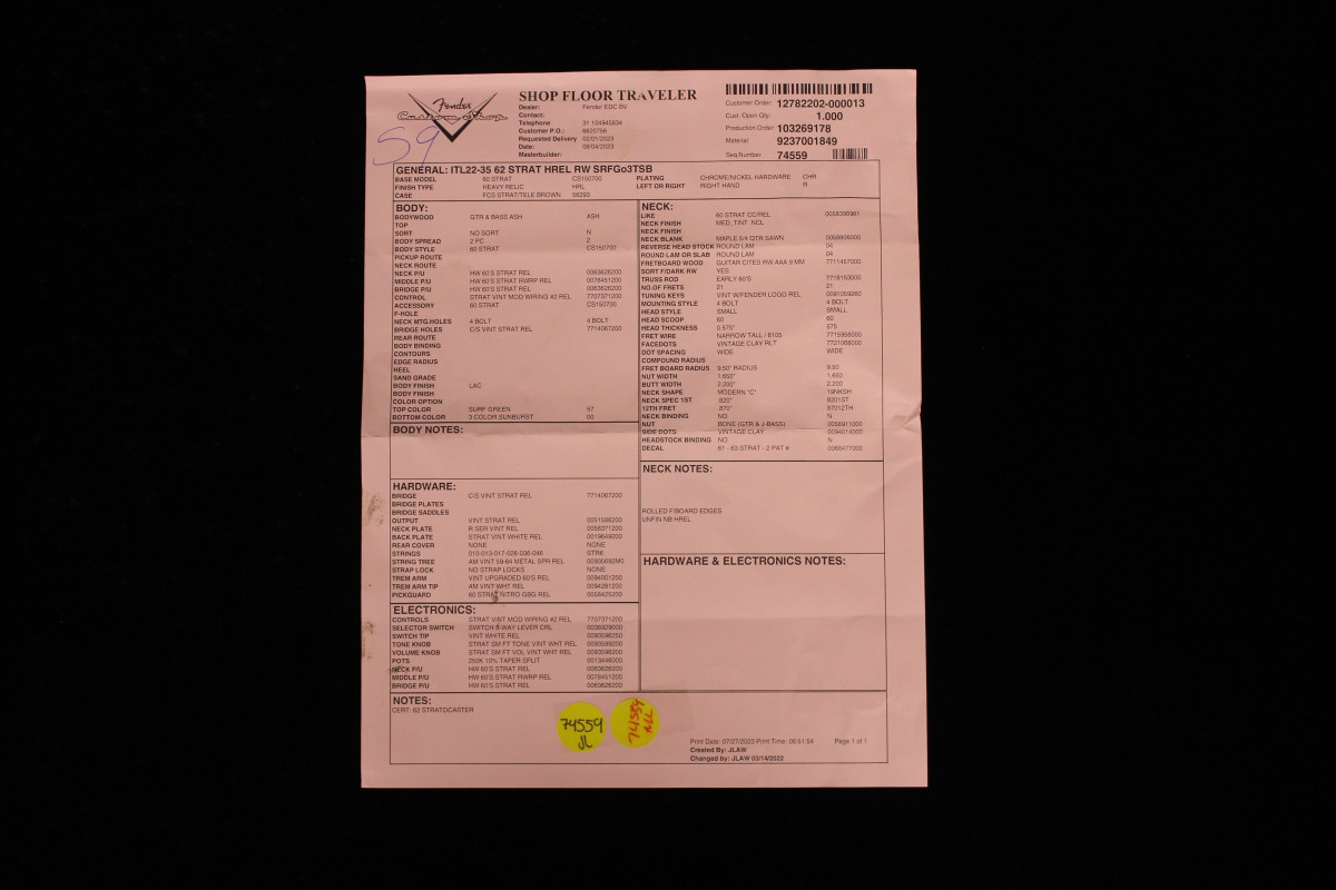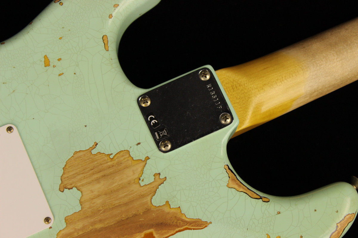 This Fender Custom 1962 Stratocaster Heavy Relic in a stunning Surf Green over 3-Color Sunburst finish was ordered by Gino Guitars as Custom Order.