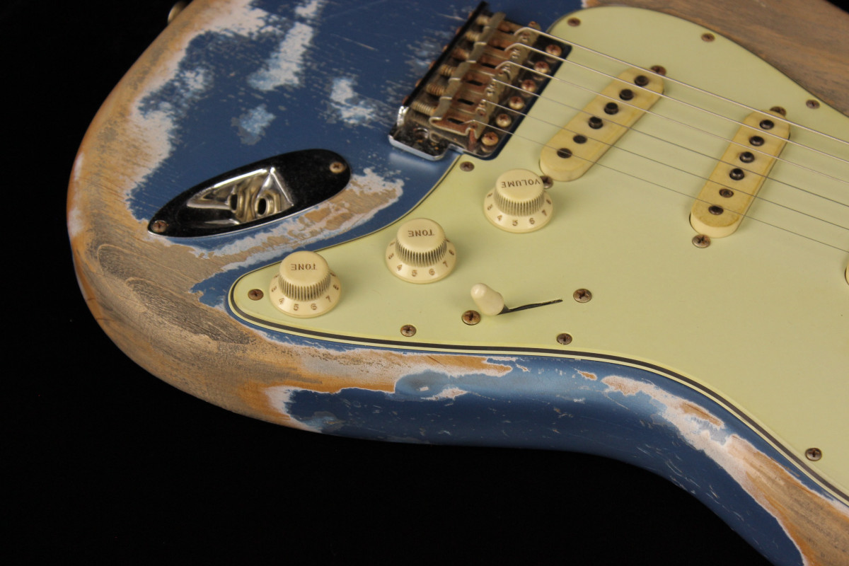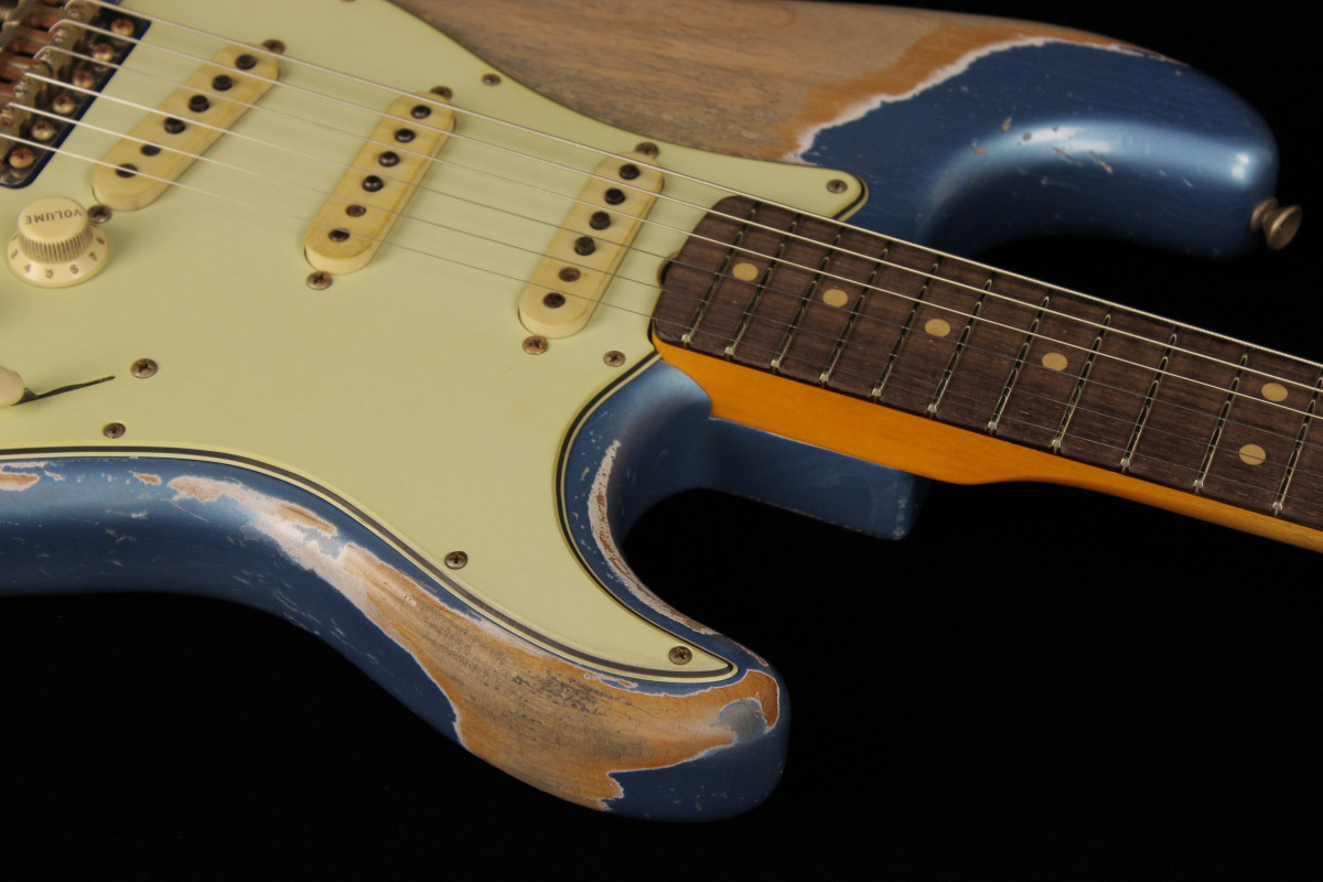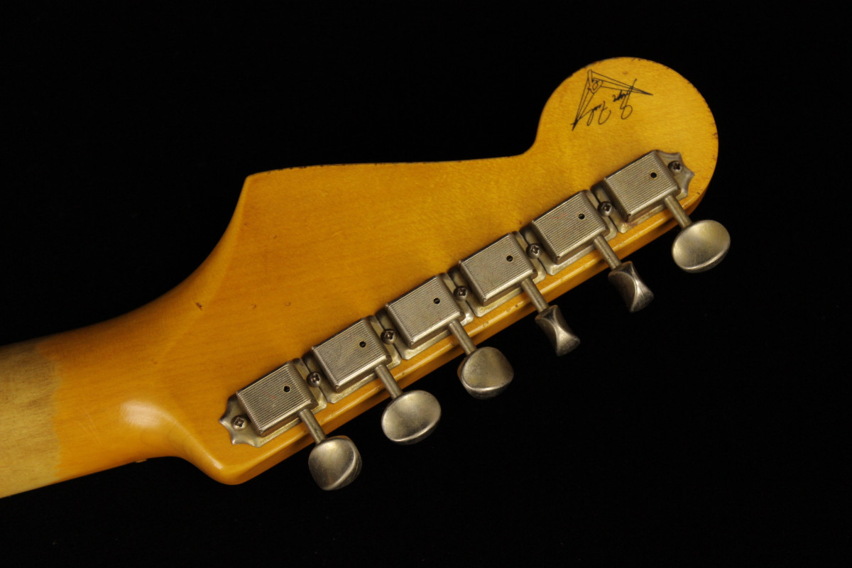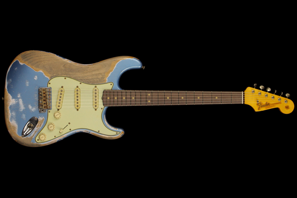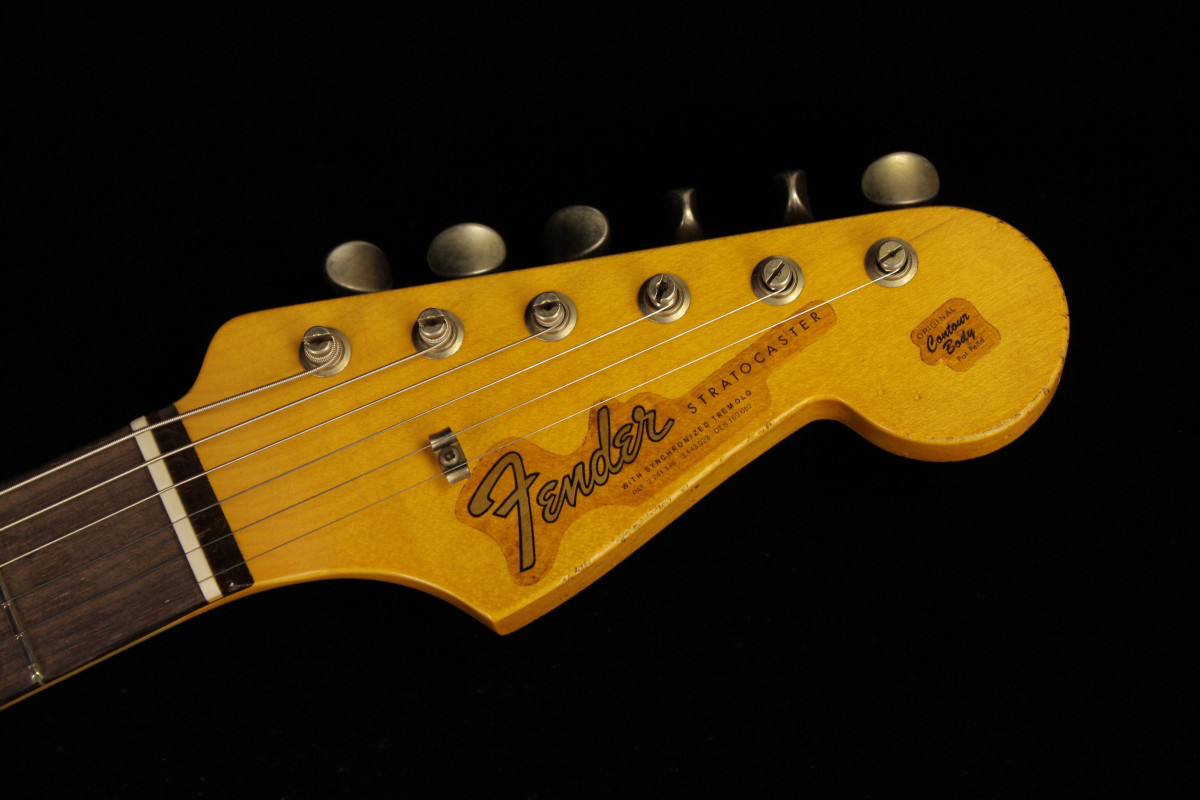 This Fender Custom 1964 Stratocaster Heavy Relic was built by the expert Masterbuilder Greg Fessler. Greg, for those unfamiliar with him, is the favourite builder for artist like Joe Bonnamasa, Jeff Healey, Hank Marvin, John Mayer, Rhonda Smith, Neil Schon.