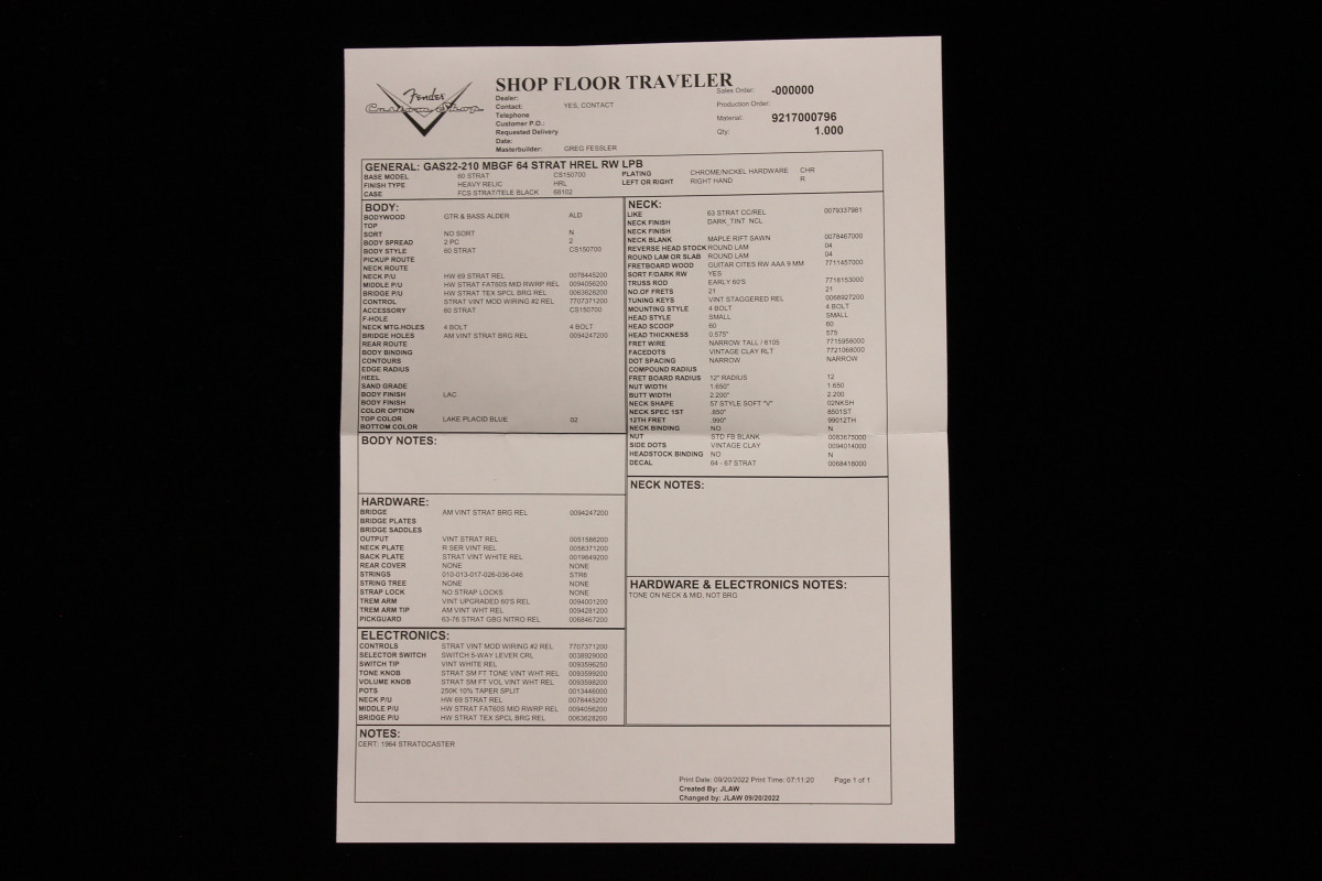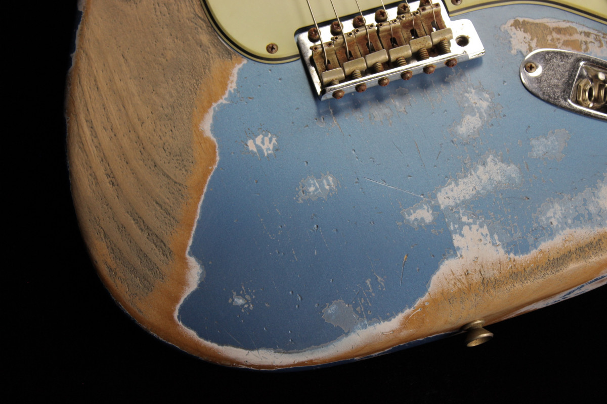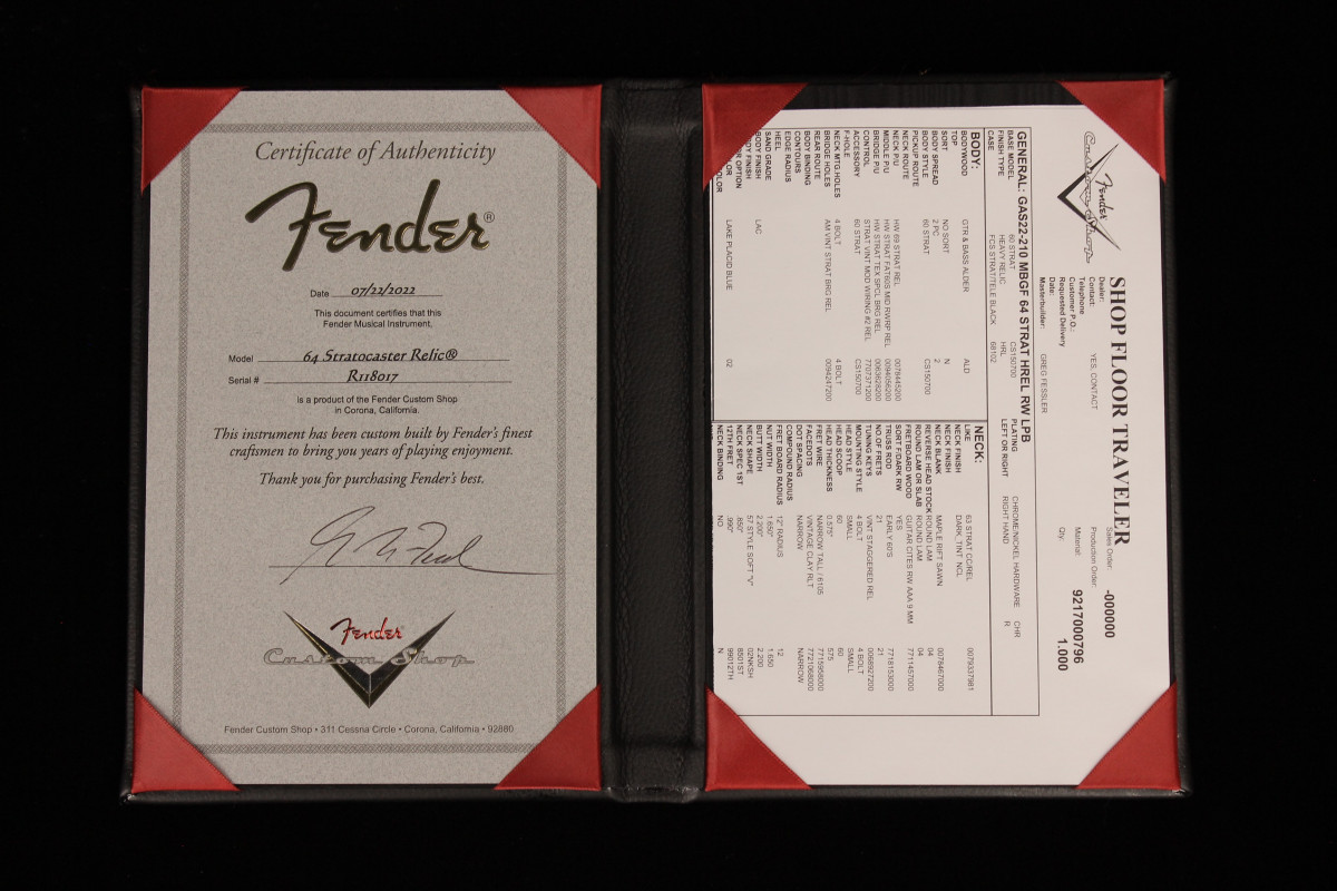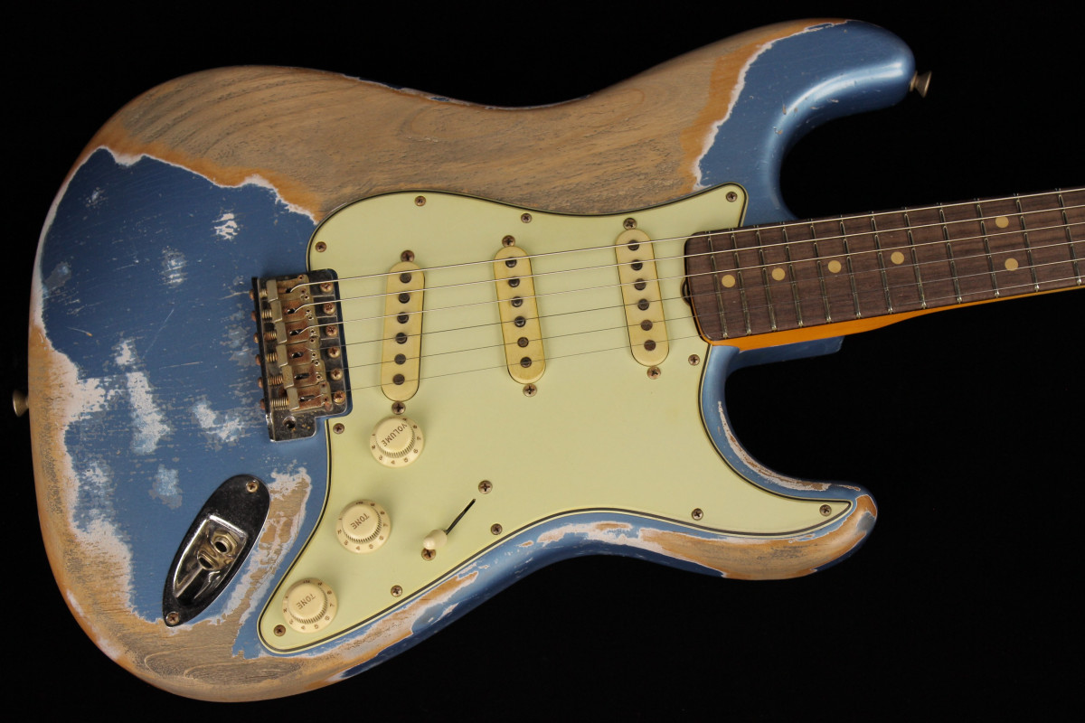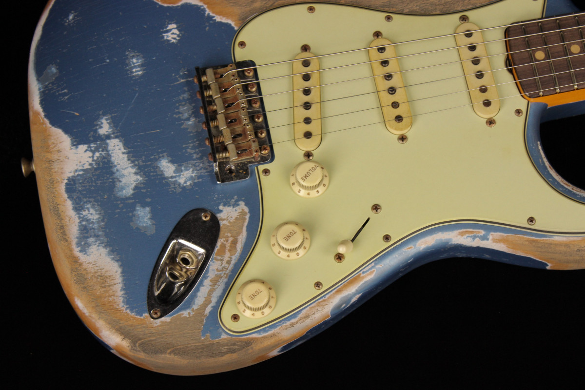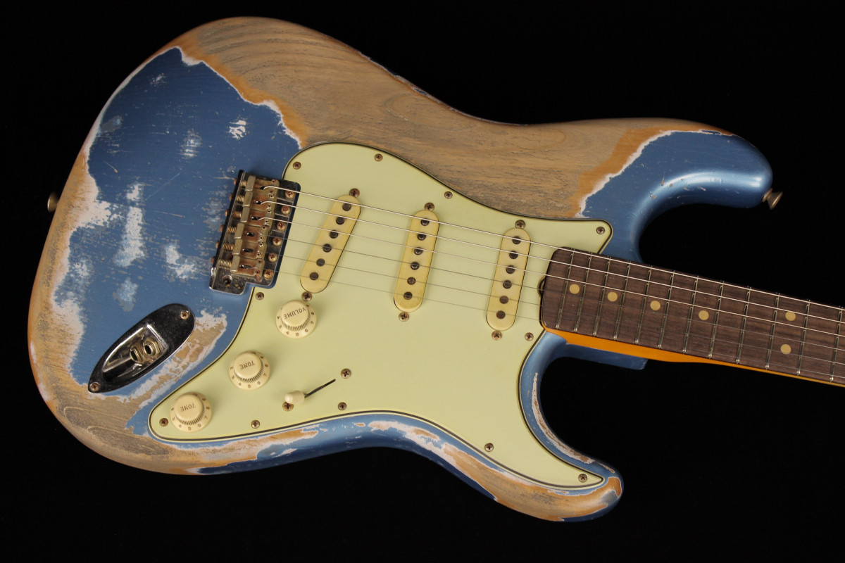 This Fender Custom 1964 Stratocaster Heavy Relic was built by the expert Masterbuilder Greg Fessler. Greg, for those unfamiliar with him, is the favourite builder for artist like Joe Bonnamasa, Jeff Healey, Hank Marvin, John Mayer, Rhonda Smith, Neil Schon.