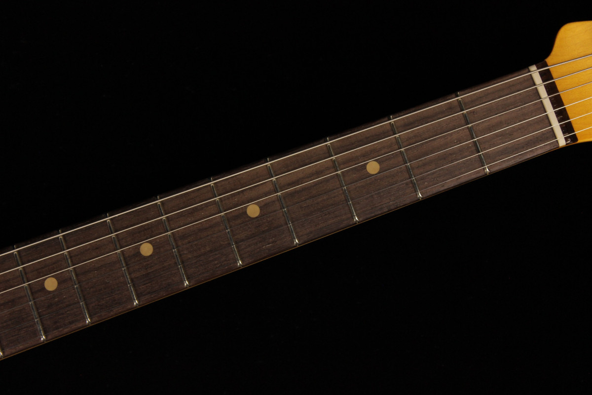 Electronics feature a Vintage Modified #2 wiring, Master Volume with Treble Bleed, Fender Custom Handwound '69 Stratocaster Single Coil in neck position, Fender Custom Handwound Fat 60's Stratocaster Single Coil RWRP in middle position and Fender Custom Handwound Texas Special Stratocaster Single Coil.