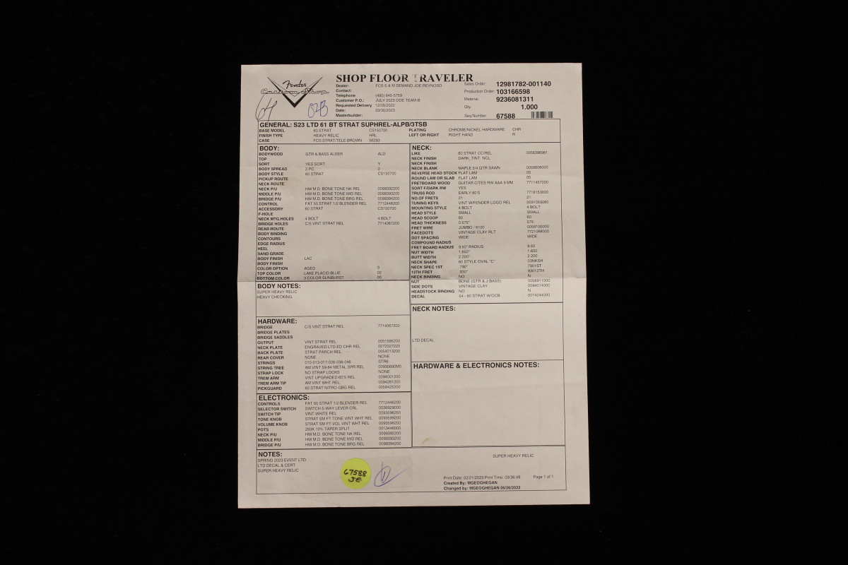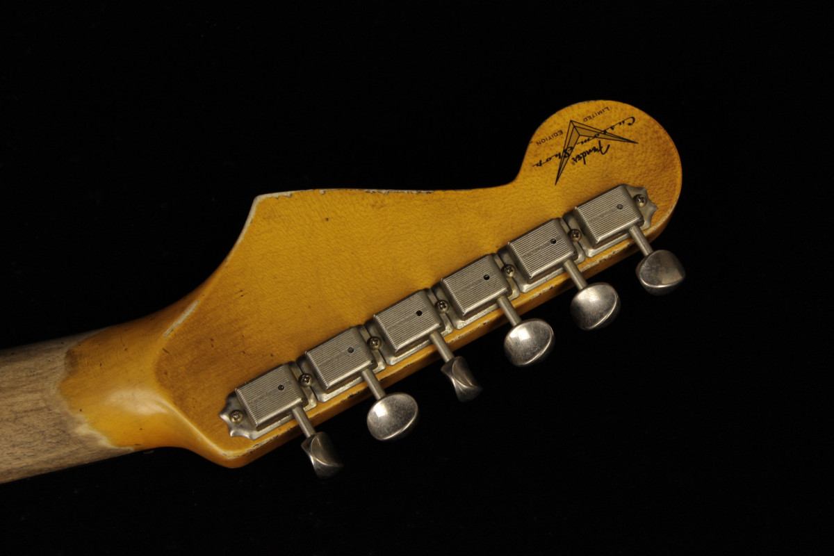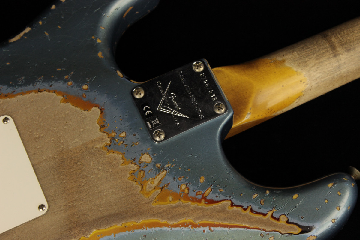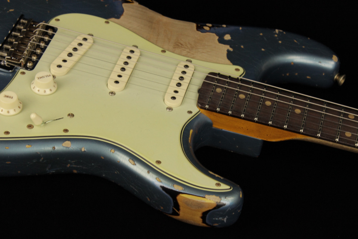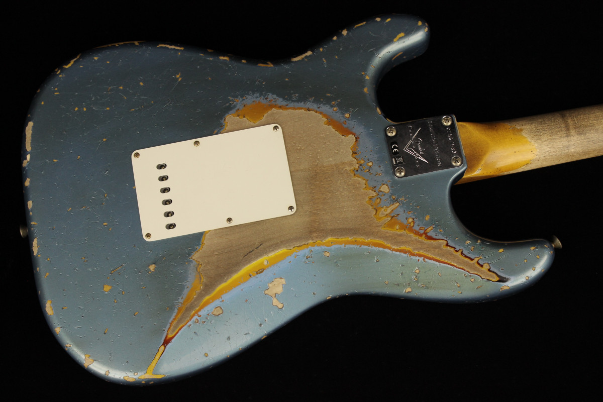 This Fender Custom Limited 1961 Stratocaster Super Heavy Relic in Aged Lake Placid Blue over 3-Color Sunburst finish features a classic Alder body sort for lightness, extremely resonant and dynamic, a Quartersawn Maple neck with a comfortable Mid 60's Oval "C" profile.
