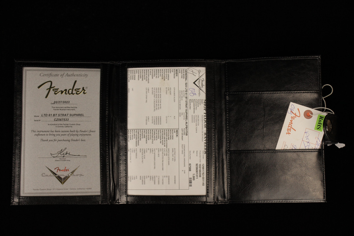 Accessories | Fender Custom Brown Hardshell Case, Fender Custom Leather Strap, Picks, Certificate of Authenticity |