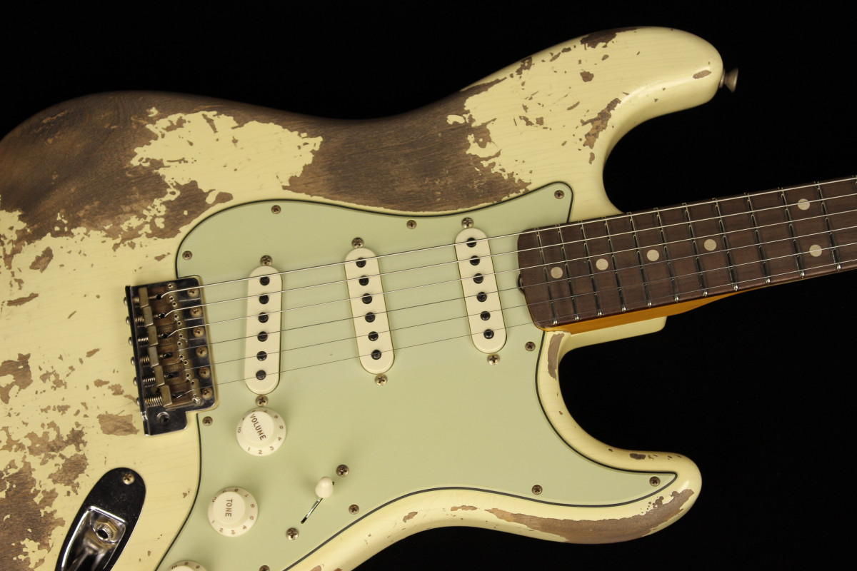 The Dual-Mag II Strat features a sort for weight alder body with a Super Heavy Relic® lacquer finish.