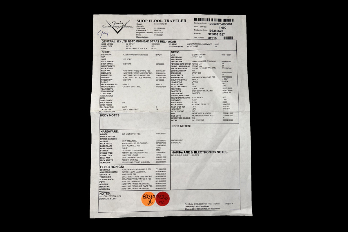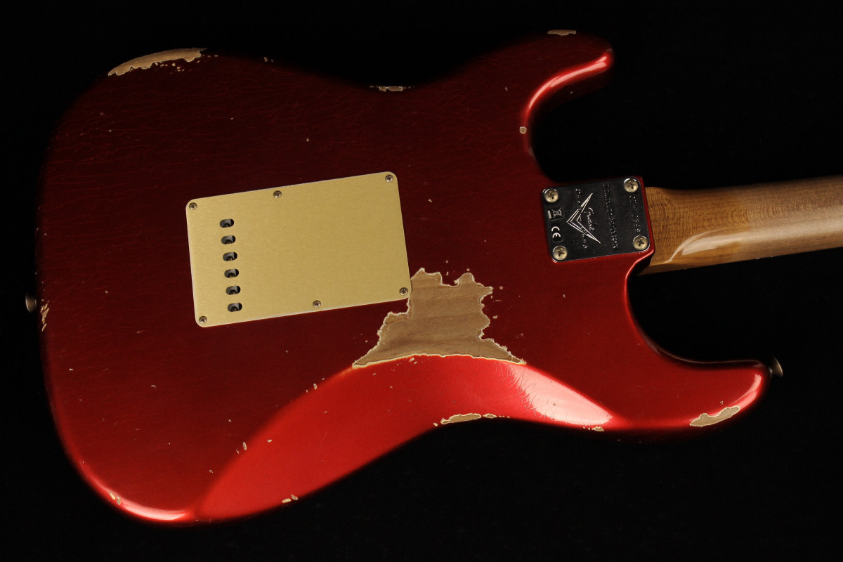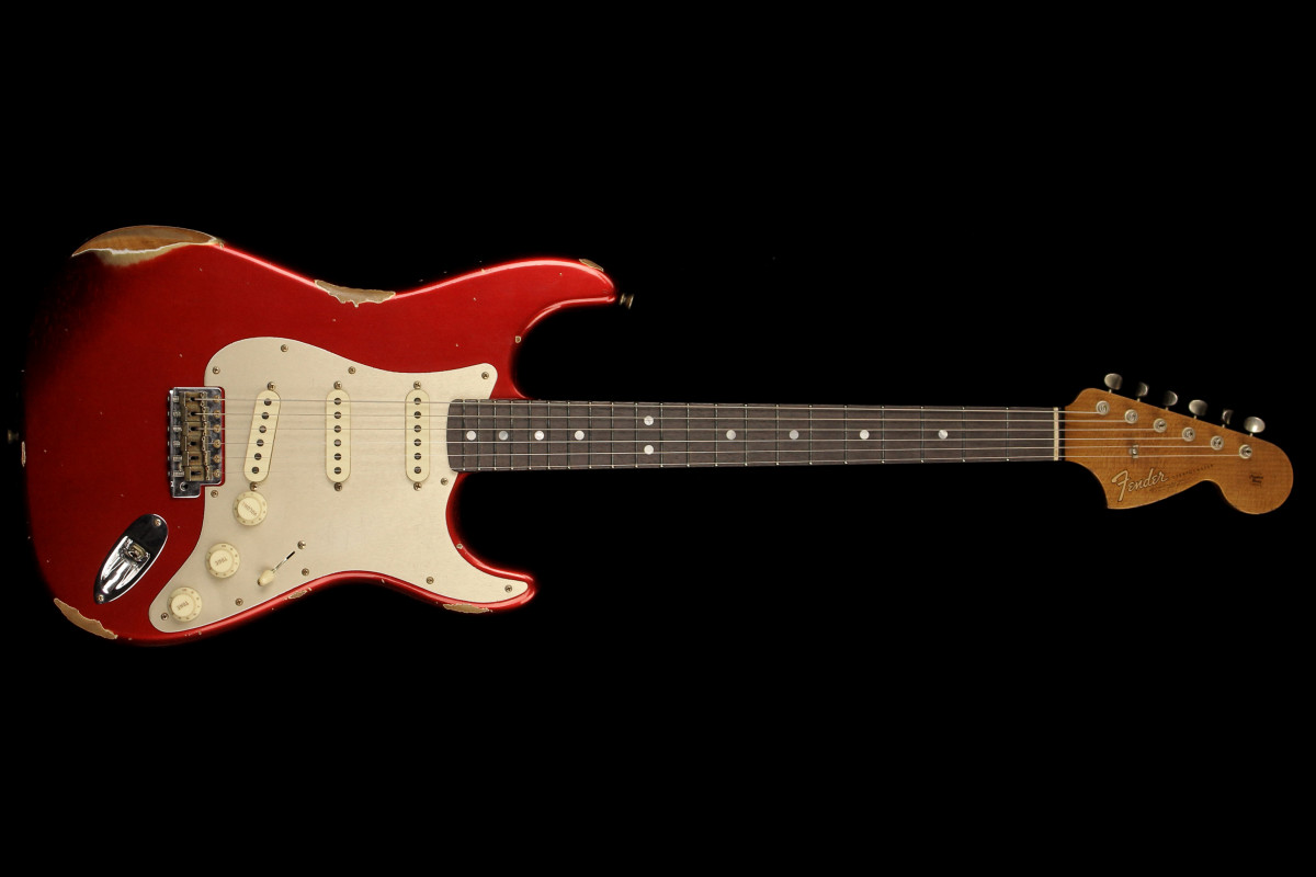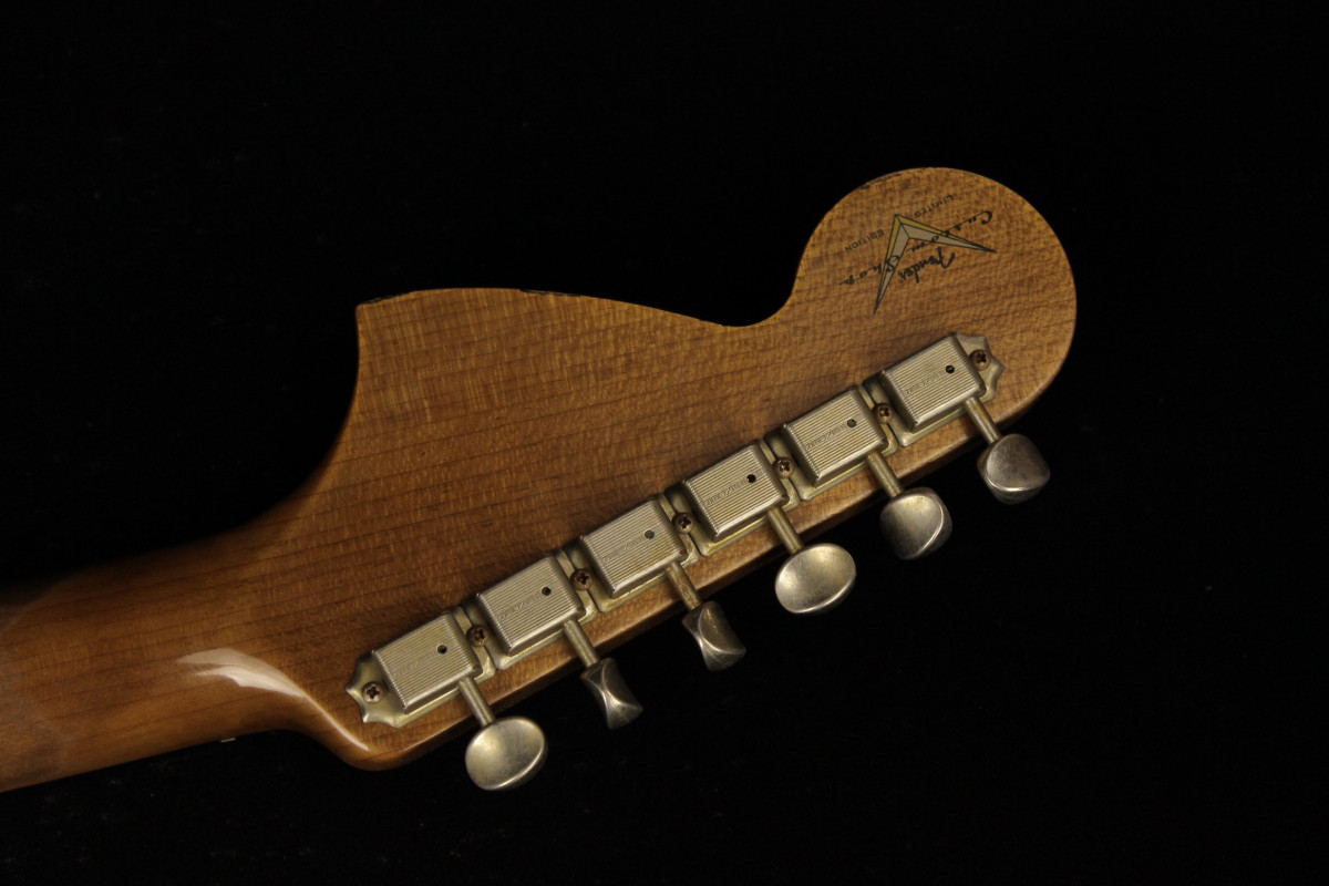 The Fender Custom Shop Limited-edition Roasted "Big Head" Stratocaster Relic celebrates guitars made in the mid-'60s — the ones with the large headstock and gold logo. This solidbody electric guitar really goes for broke, brandishing a 2-piece select roasted alder body with a scene-stealing Relic nitrocellulose lacquer finish and an 11-hole gold anodized aluminum pickguard. Its rock-solid quarter-sawn maple neck boasts a supremely comfortable '63-style "C" back shape and a lightning-fast 9.5-inch-radius round-lam rosewood fingerboard.