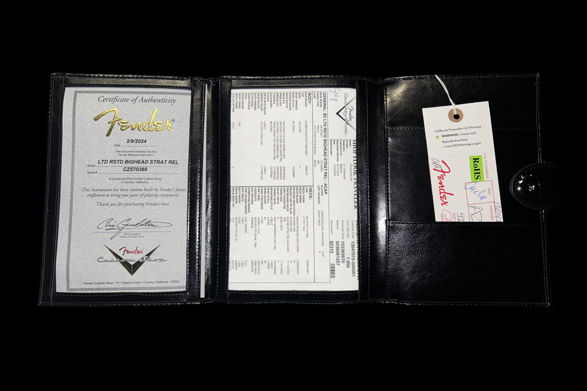 Accessories | Fender Custom Black Hardshell Case, Fender Custom Leather Strap, Picks, Certificate of Authenticity |