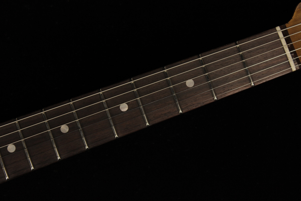 Special pickups and wiring deliver amazingly versatile tone. Three Custom Shop Hand-Wound Fat '60s pickups (reverse-wound/reverse-polarity middle pickup for hum cancellation in switch positions 2 and 4) produce lots of power with the sweetness of alnico 2 magnets. POMO Strat® Fat '50s wiring delivers stronger overall tone with more transparent bloom, also minimizing the typical treble loss that occurs when rolling back the volume. The volume and tone controls consequently react more smoothly and more evenly, without the typical hot spots, making it easier to clean up an overdriven amp simply by slightly rolling back the guitar's volume knob. Further, the Greasebucket™ II bridge-pickup tone control minimizes Gain/Mid loss when turned down.