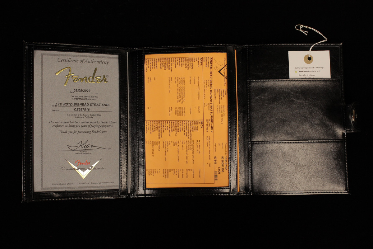 Accessories | Fender Custom Black Hardshell Case, Fender Custom Leather Strap, Picks, Certificate of Authenticity |