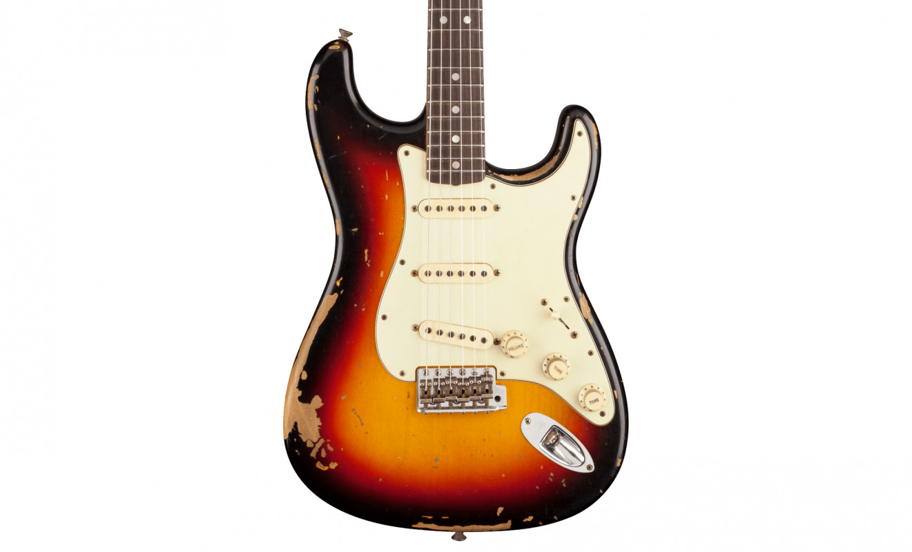 The Fender Custom Shop Artist Collection Michael Landau Signature 1968 Relic Stratocaster is based on Landau’s 1968 Stratocaster, with a hand-selected lightweight alder body, special "custom oval" neck profile, custom hand-wound pickups and wiring, and a worn Black and Bleached Three-color Sunburst nitrocellulose lacquer finishes. Other features include a round-laminated dark rosewood fingerboard with a 7.25" radius and 6105 frets, period-correct large headstock, five-way pickup switching, and custom vintage-style tremolo bridge. The guitar comes with a case, strap and Fender Custom Shop certificate of authenticity.