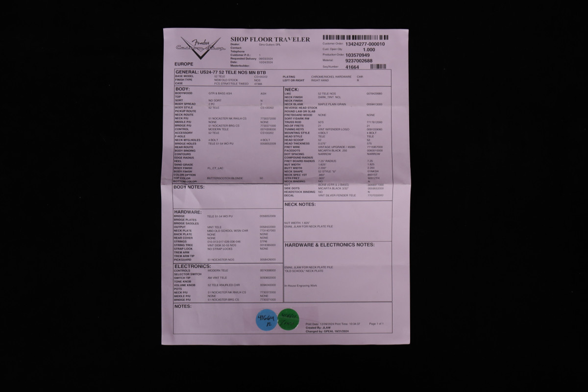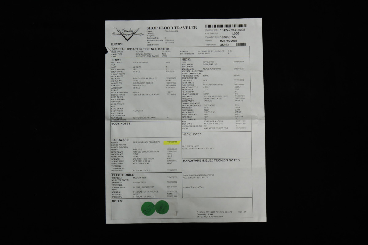 Certificate | Fender Custom Shop Certificate of Authenticity |