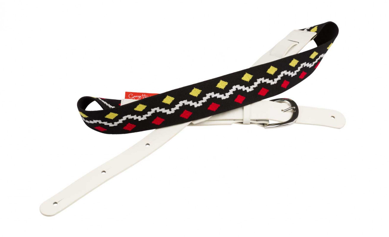 This strap is a faithful reproduction of the famous strap used during the recordings of Let It Be. Made from soft leather, featuring a silver buckle and a Woven Multi Color design.